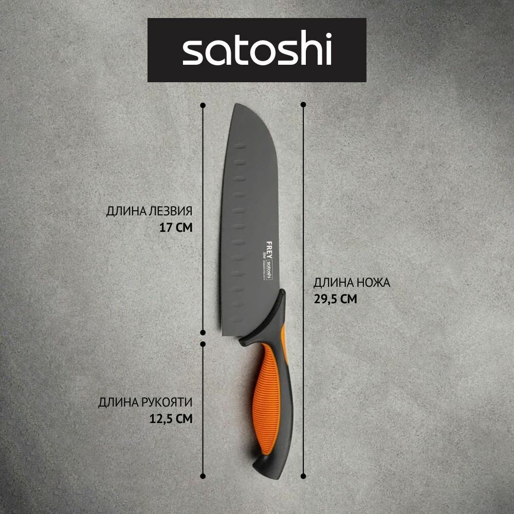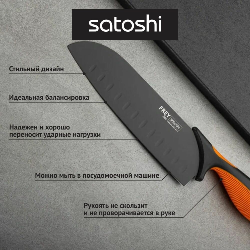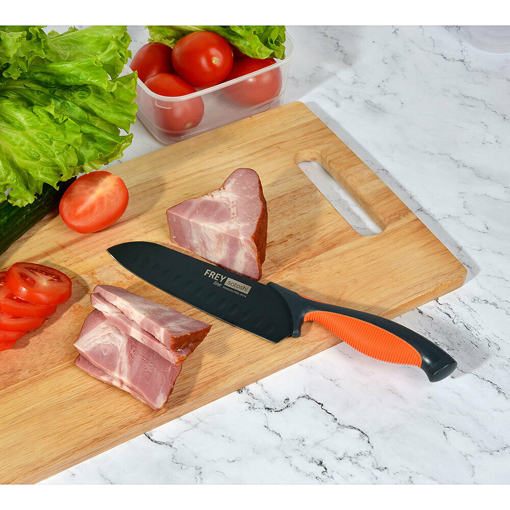 Кухонный нож-сантоку SATOSHI Фрей, 17 см с антиналипающим покрытием, универсальный нож, нож для мяса, рыбы