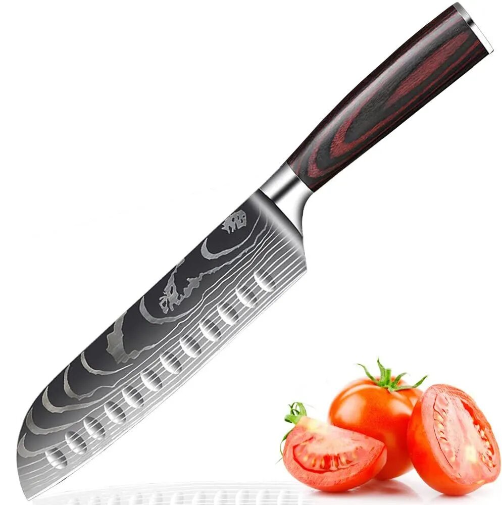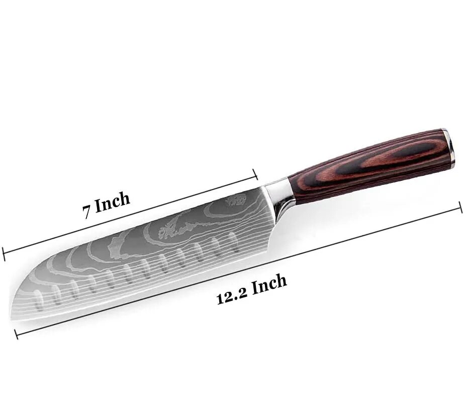 Кухонный нож Сантоку 7-ми дюймовый, высокоуглеродистая сталь, деревянная ручка, бренд XITUO