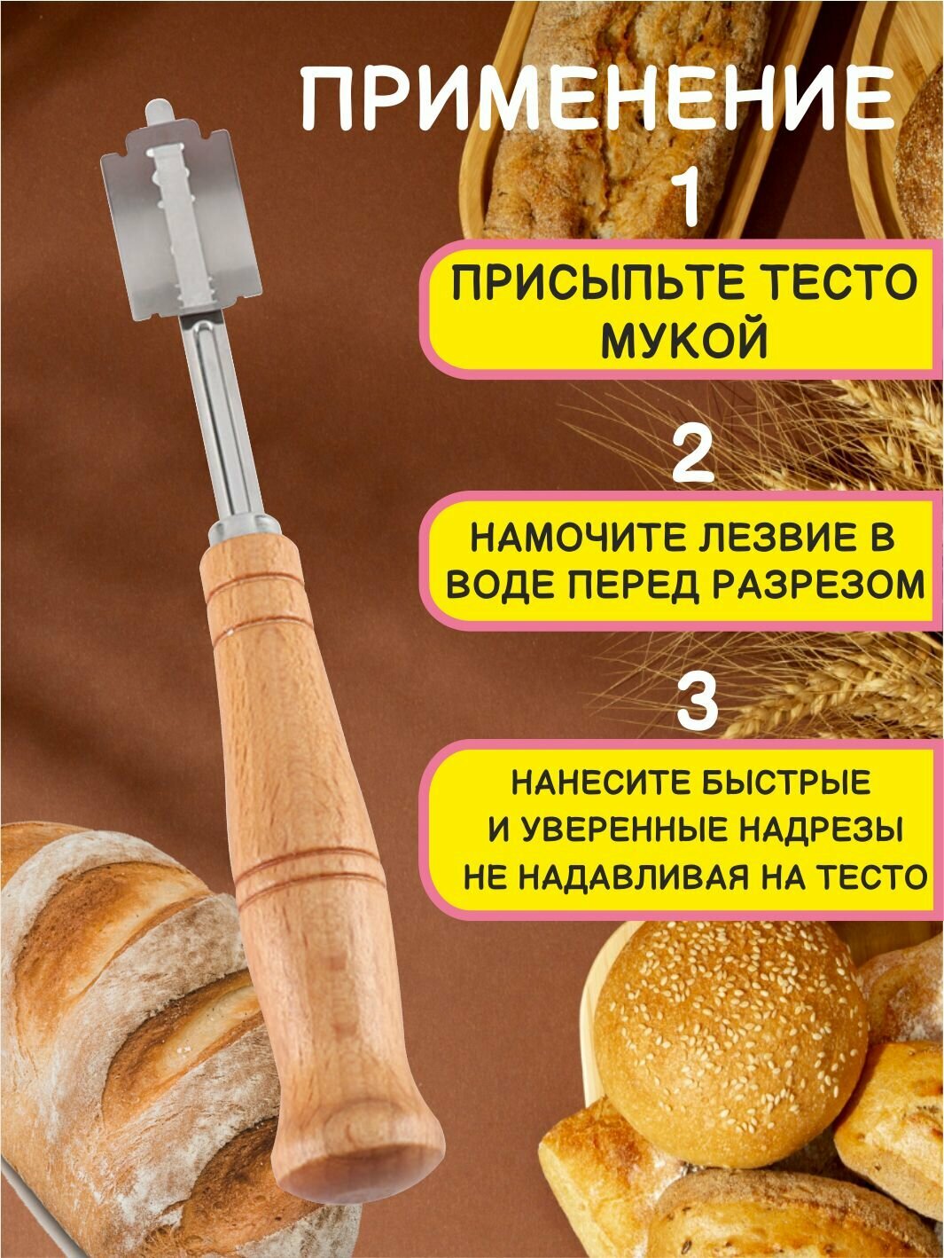 Купить Нож пекарский с лезвиями для выпечки хлеба и теста