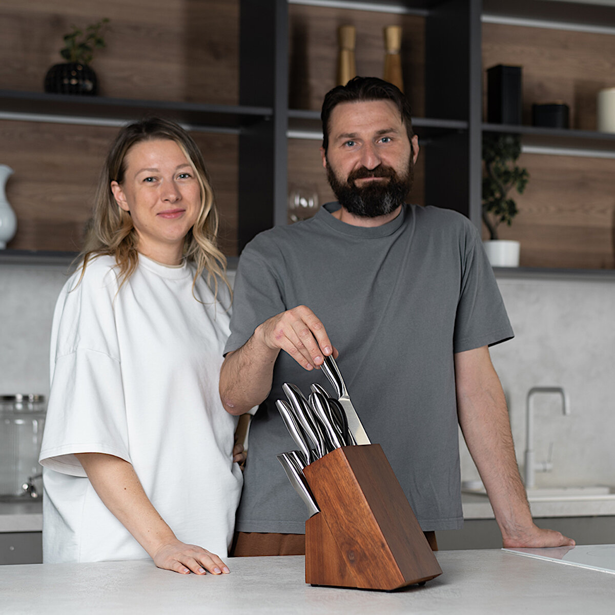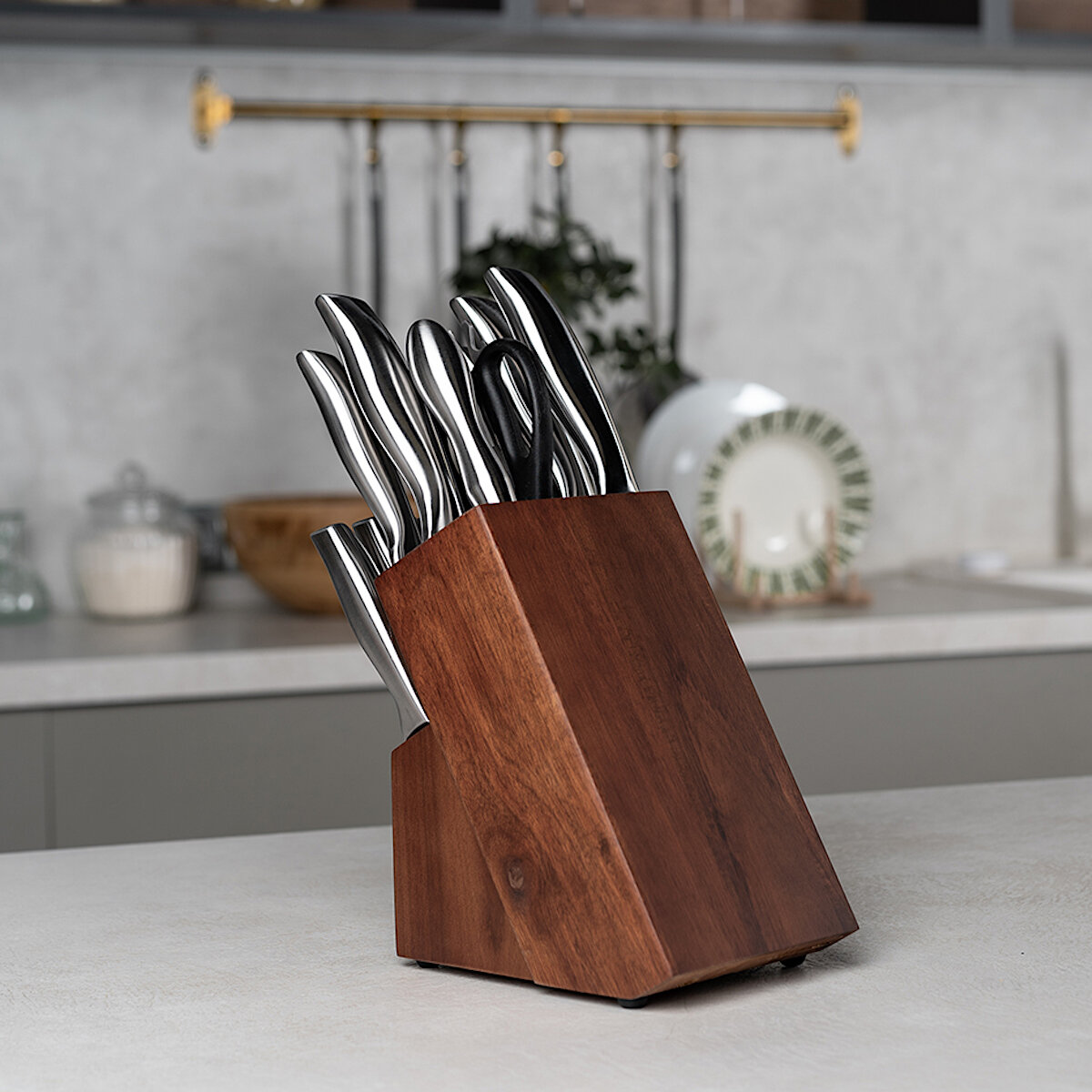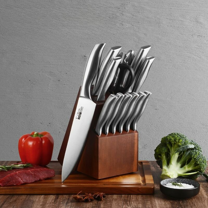HILZZ / Ножи стальные кухонные набор на деревянной подставке 14 предметов интересное: