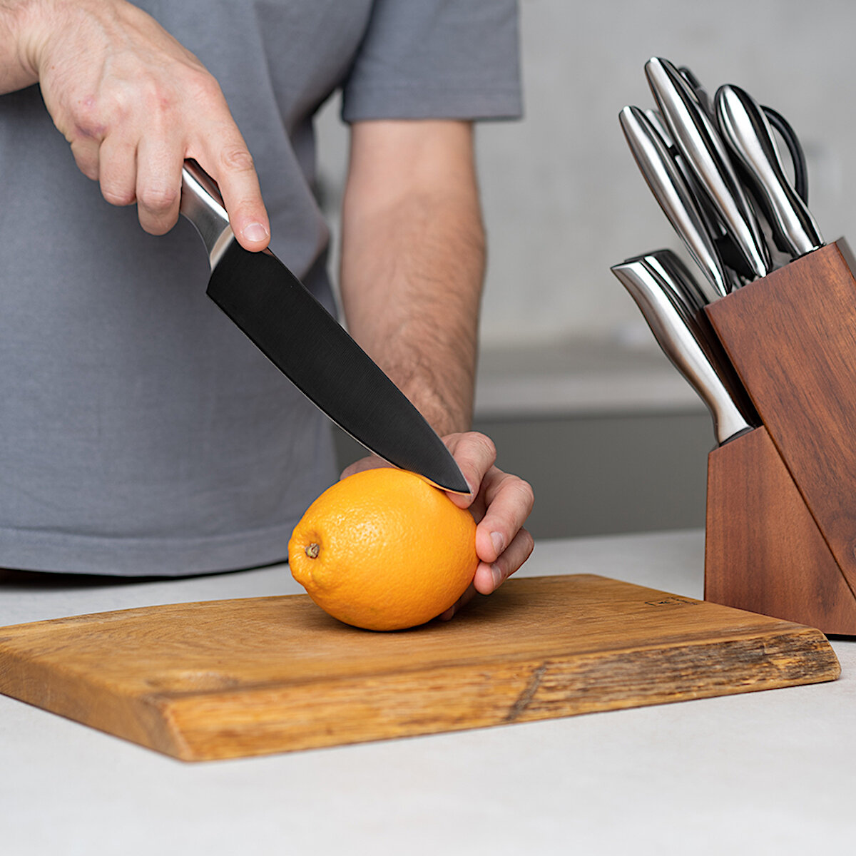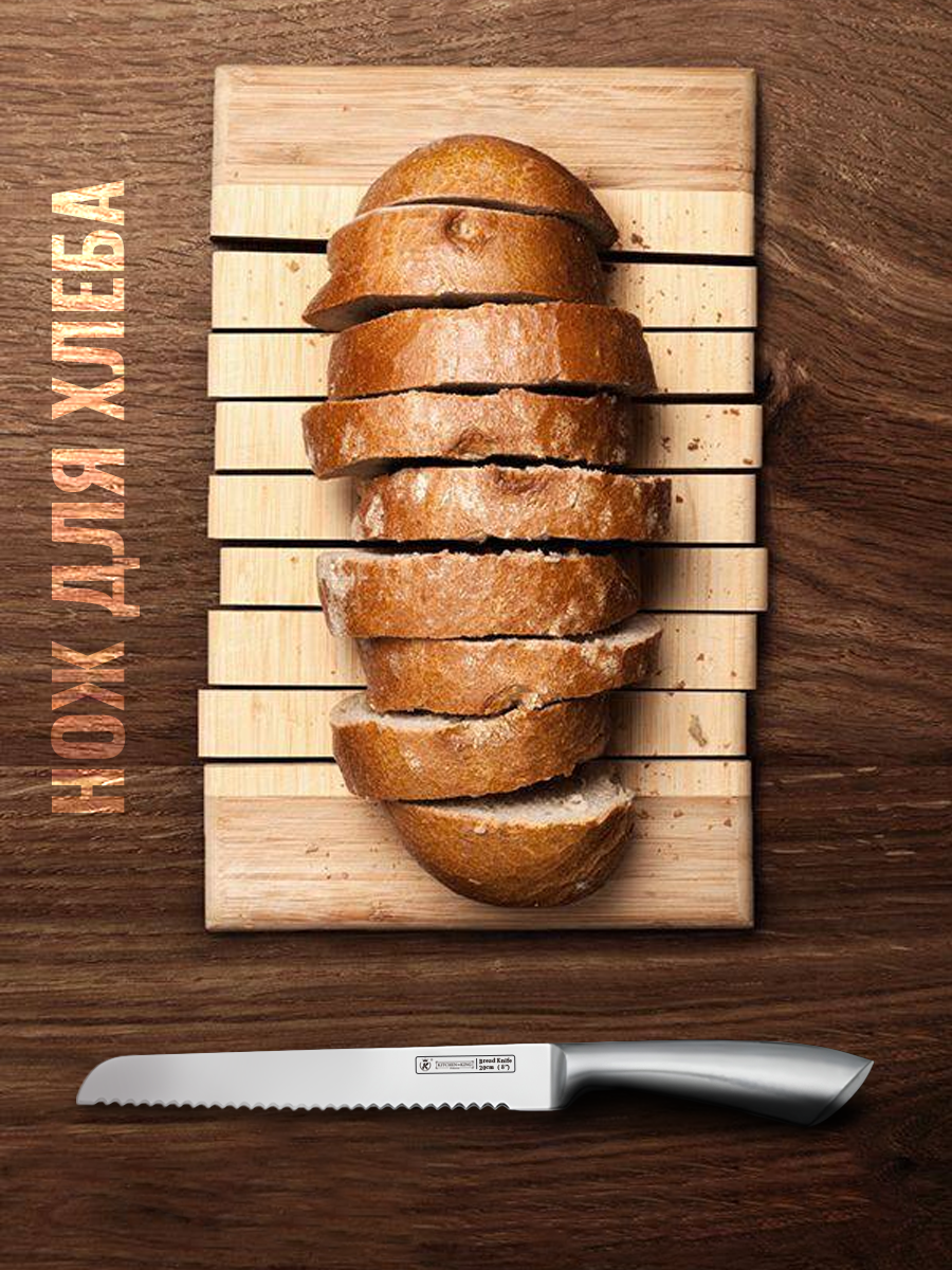 | Состав набора ножей | нож для овощей, нож для хлеба, нож-топорик, разделочный нож, универсальный нож, шеф-нож |