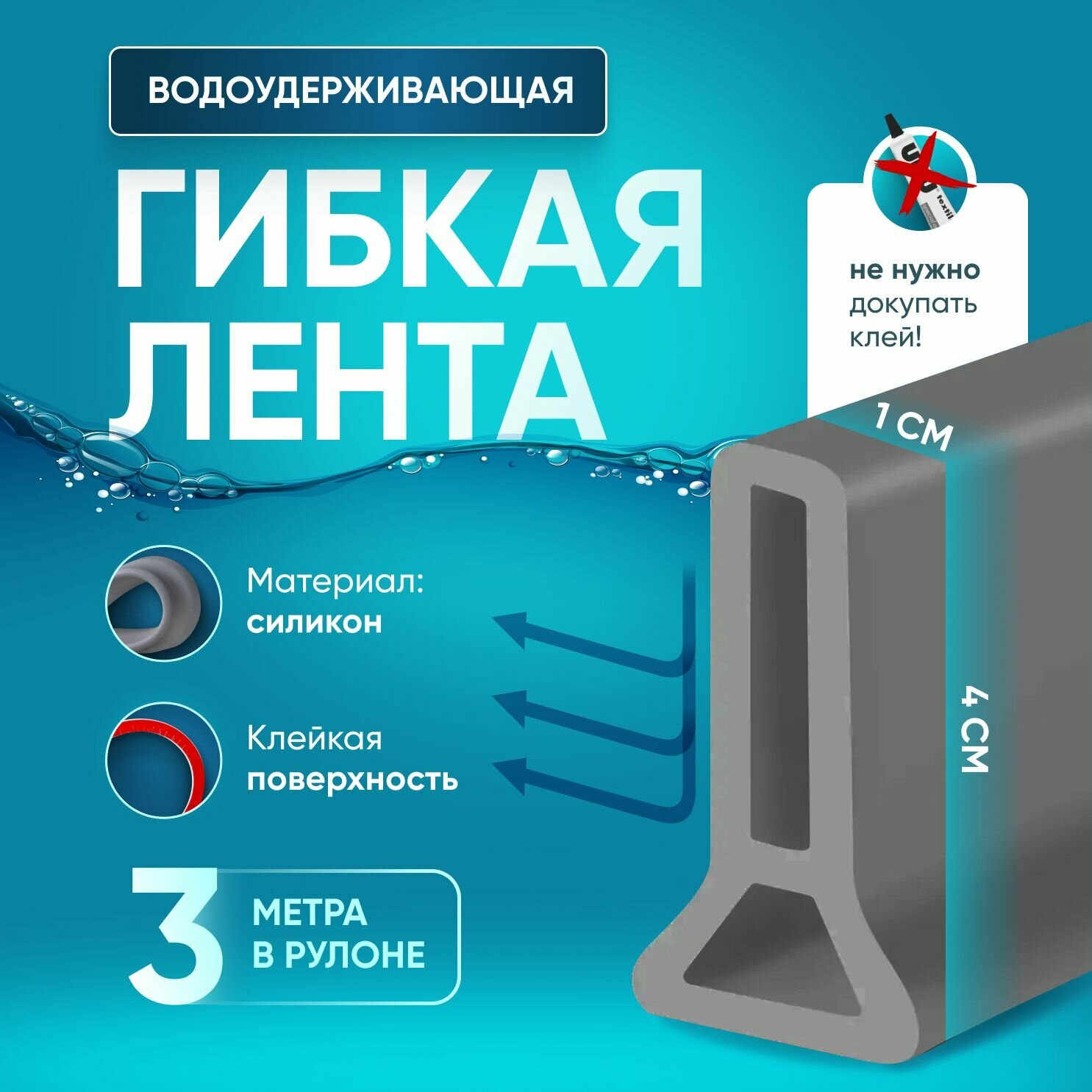Купить Силиконовая водоудерживающая лента,барьер для душа,силиконовая водоудерживающая лента. Серая 3 метр