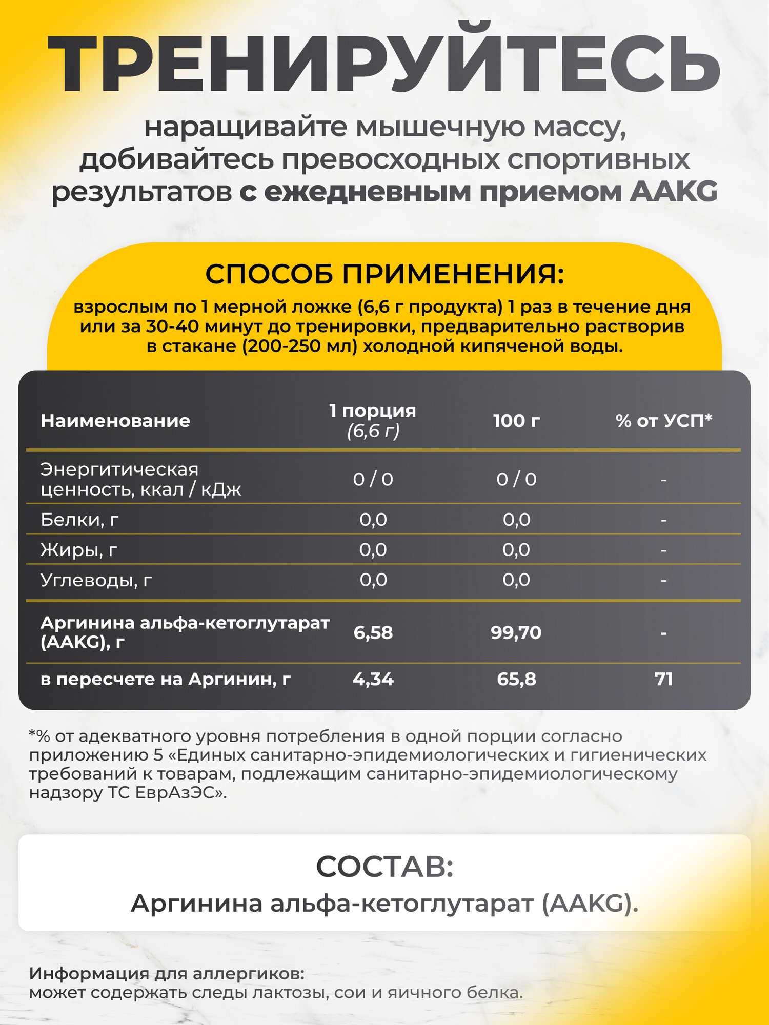 Аргинин порошок альфа-кетоглутарат, аминокислоты аакг, VitaMeal AAKG, 150 г, Нейтральный (без ароматизаторов) интересное: