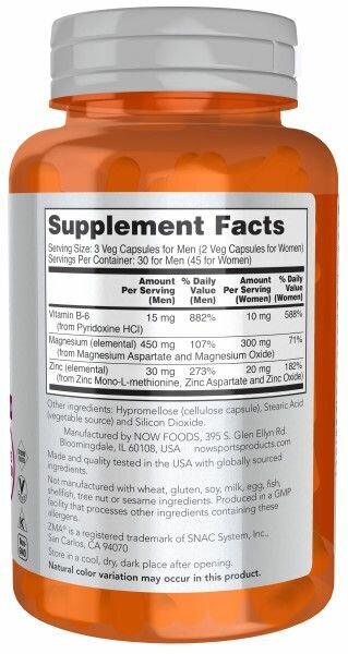 ЗМА (Цинк, Магний, B-6), NOW Sport ZMA 90 капсул интересное: