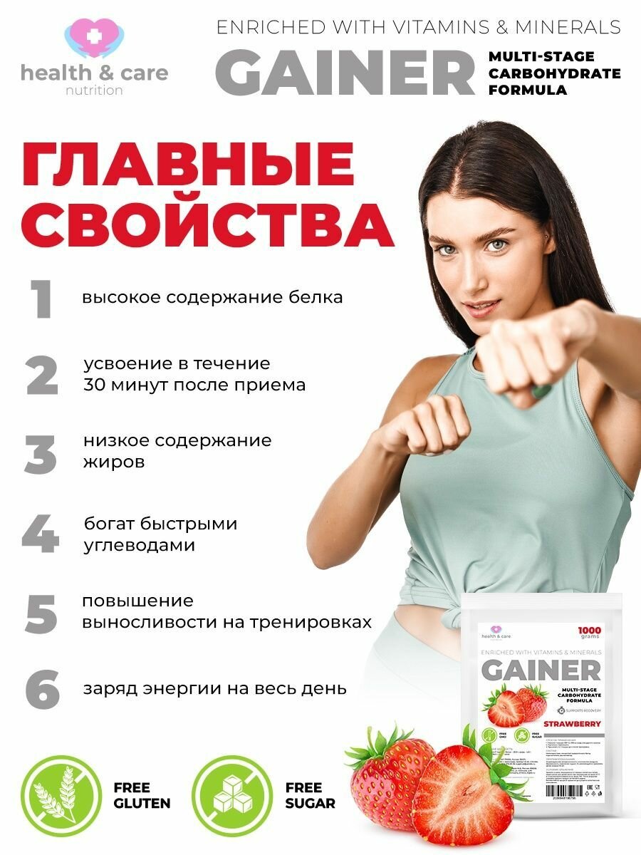 health & care Гейнер высокоуглеводный со вкусом Клубника 1000г интересное: