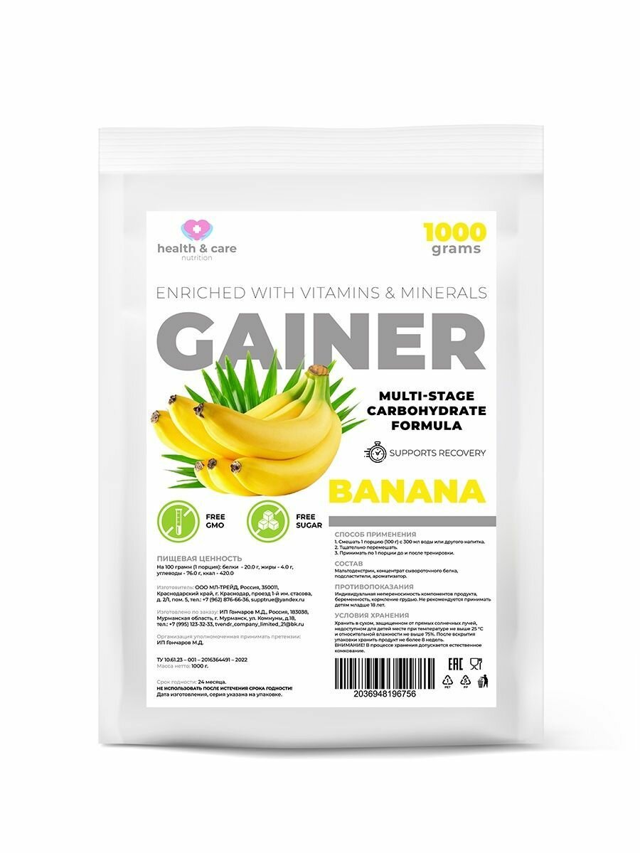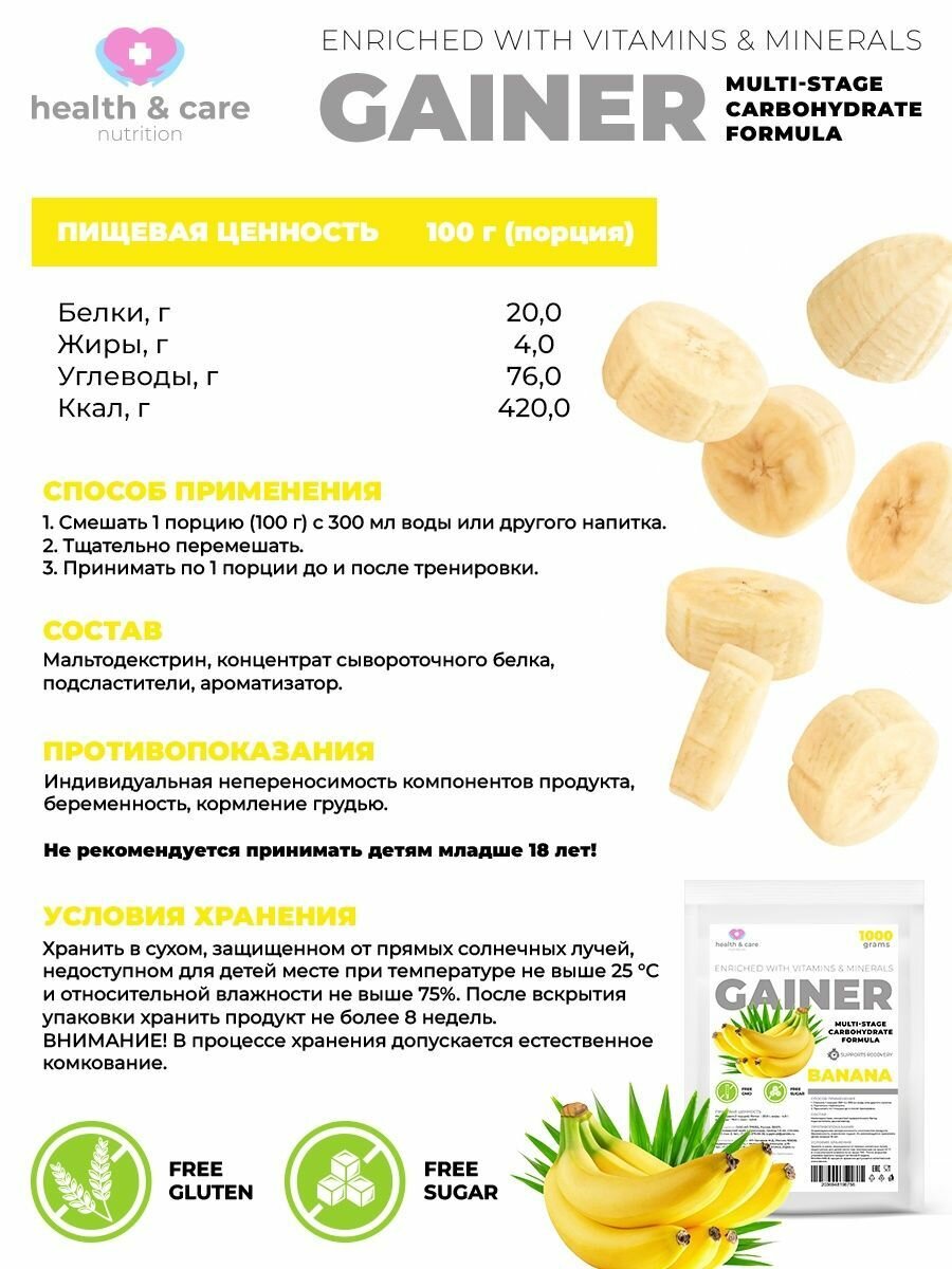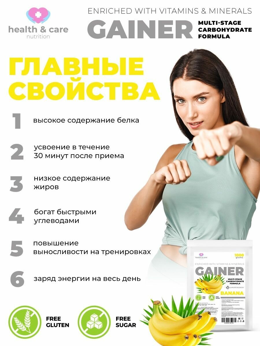 Купить health & care Гейнер высокоуглеводный со вкусом Банан 1000г
