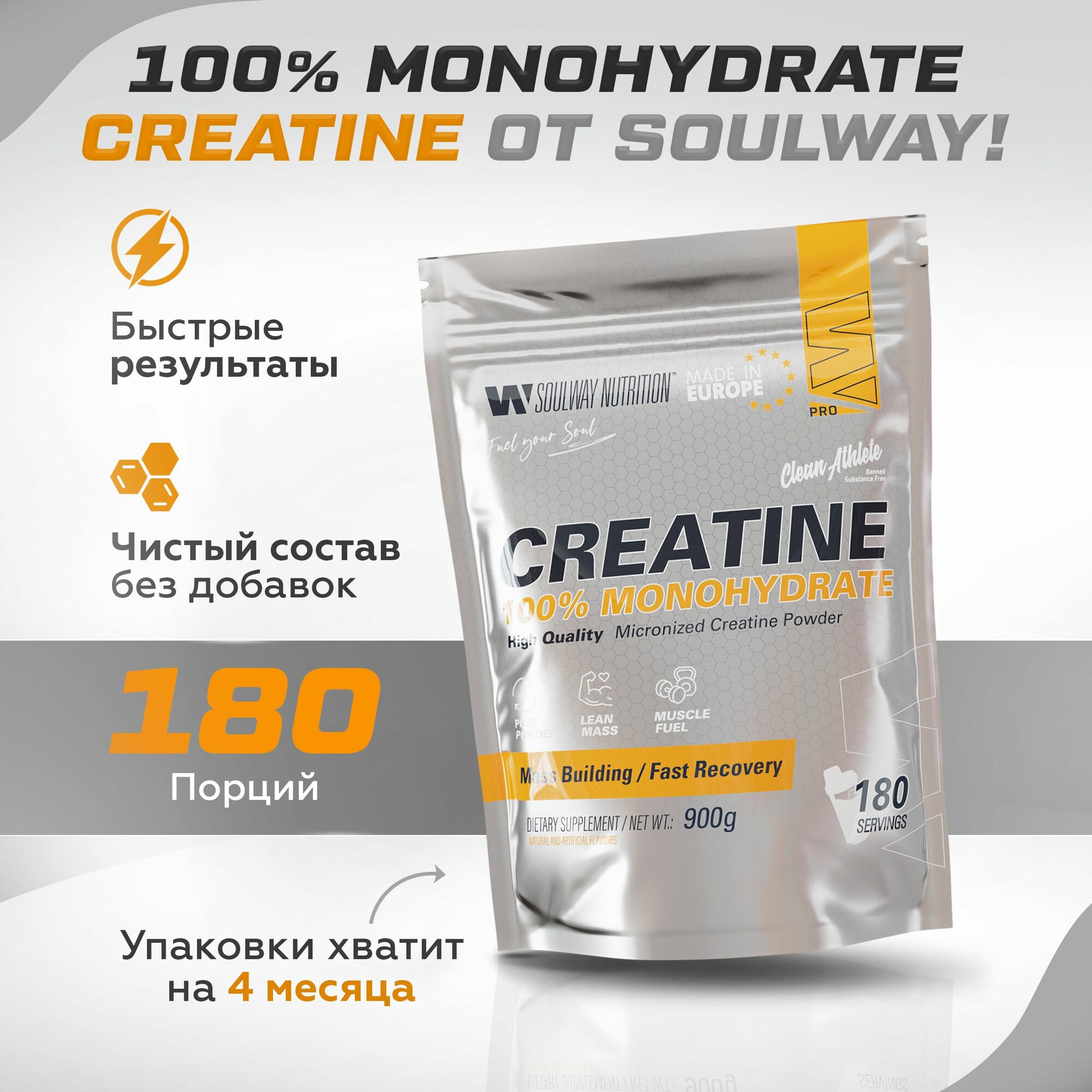 Креатин моногидрат порошок 400 г / Soul Way / 80 порций