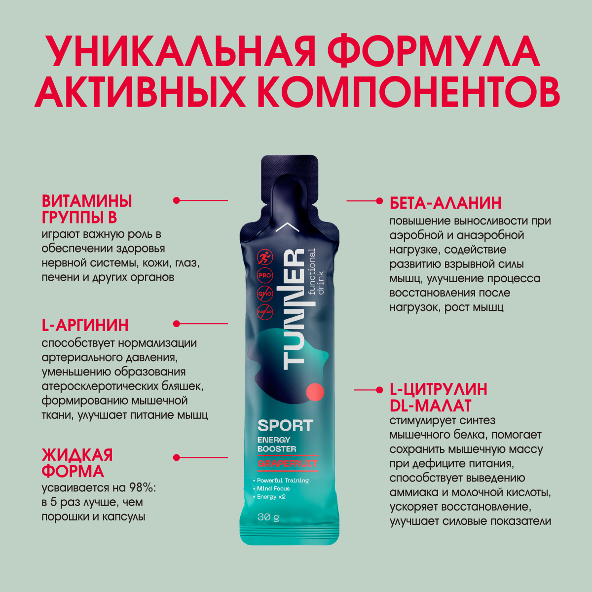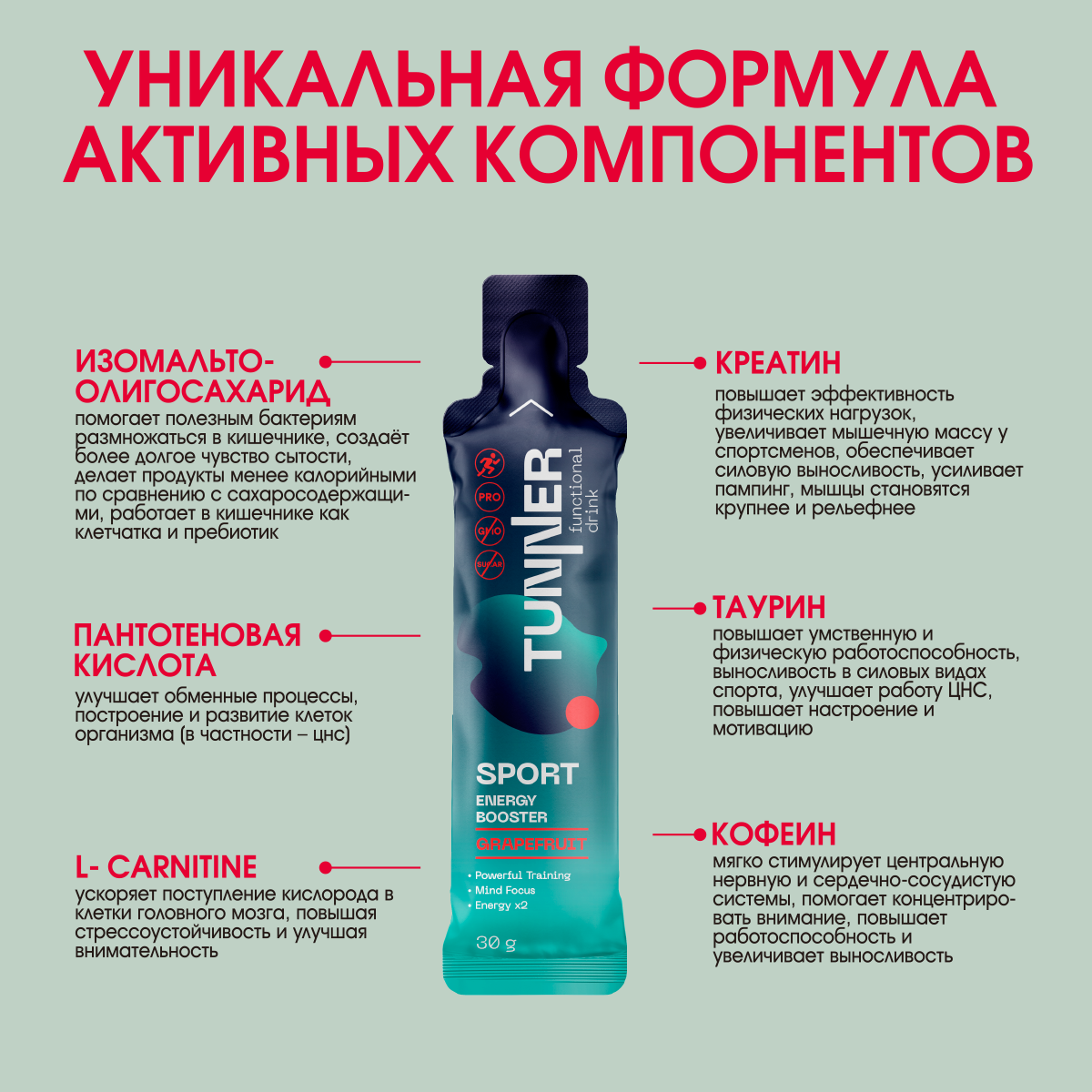 Креатин предтренировочный комплекс ENERGY BOOSTER, напиток со вкусом грейпфрута, ТМ TUNNER, 20х30гр. интересное: