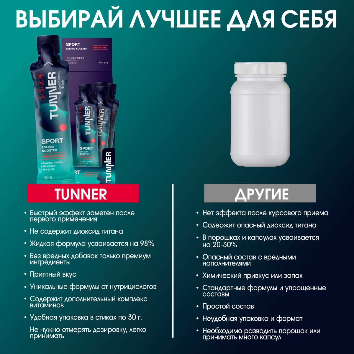 Ниже Вы можете прочитать отзывы на Креатин предтренировочный комплекс ENERGY BOOSTER, напиток со вкусом грейпфрута, ТМ TUNNER, 20х30гр., ознакомится с подробными характеристиками, посмотреть интересные обзоры и фотографии на Креатин предтренировочный комплекс ENERGY BOOSTER, напиток со вкусом грейпфрута, ТМ TUNNER, 20х30гр..