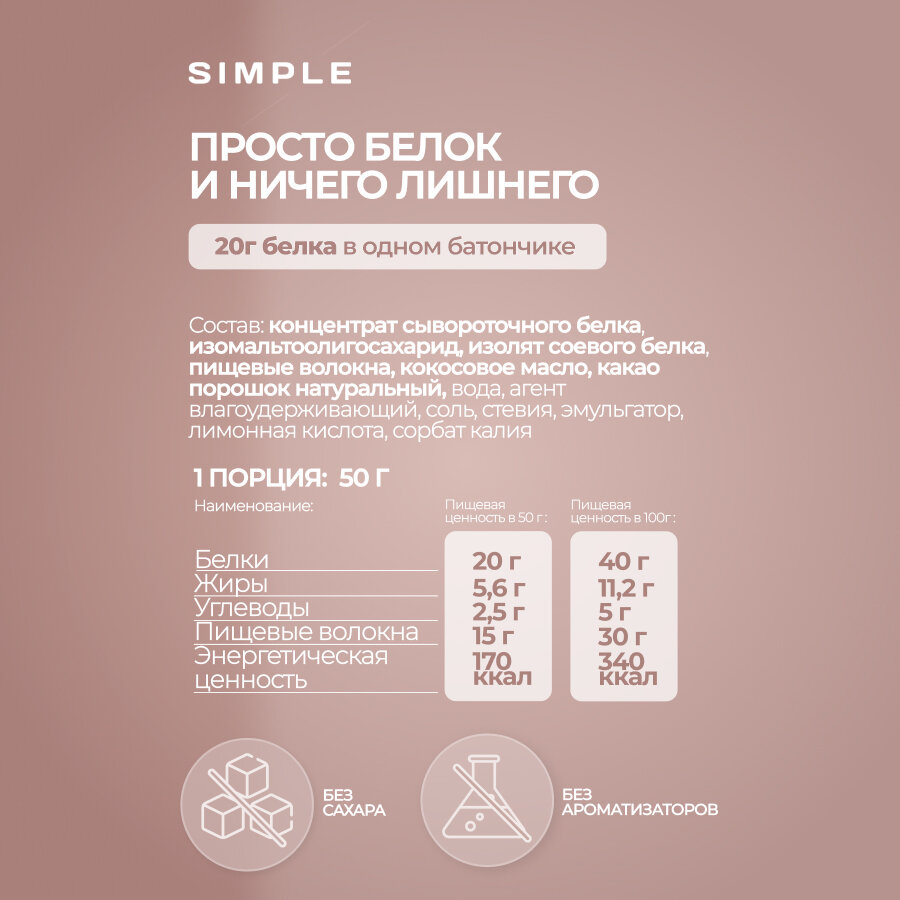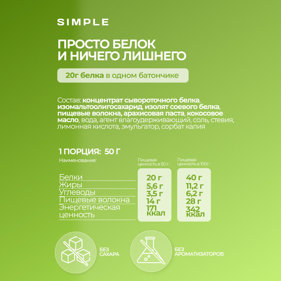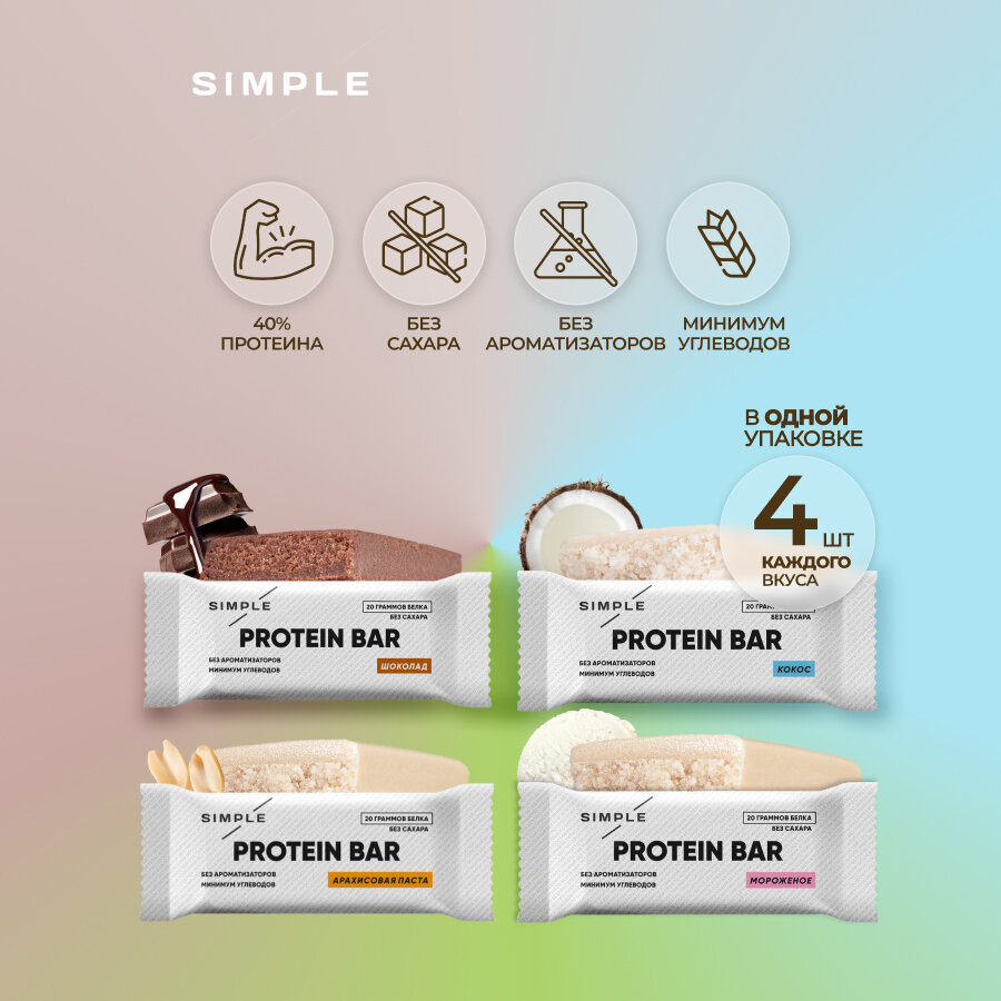 Протеиновые батончики без сахара Simple со вкусом Мороженое, 16 штук по 50 гр.