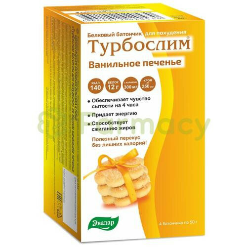 Турбослим батончик для похудения со вкусом ванильное печенье, 4 шт, Эвалар интересное: