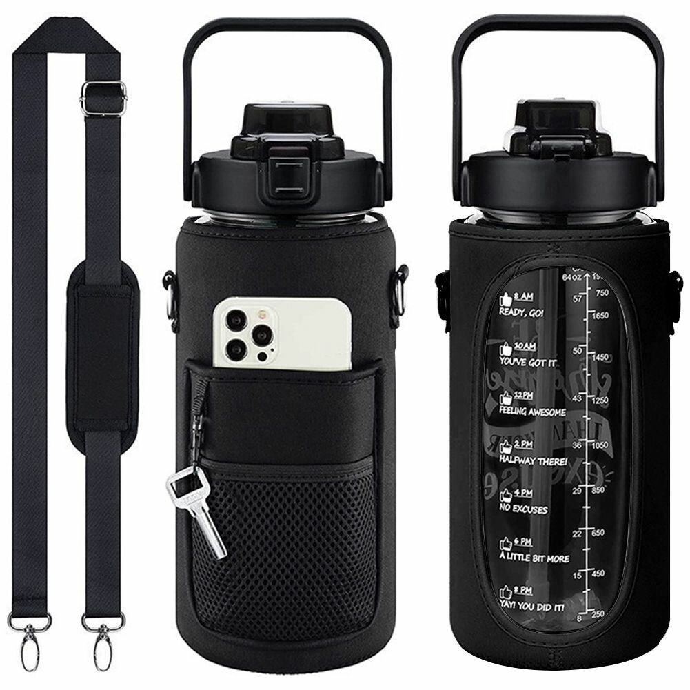 Большая спортивная бутылка для воды 2литра с чехлом, ремешком и карманом для телефона интересное: