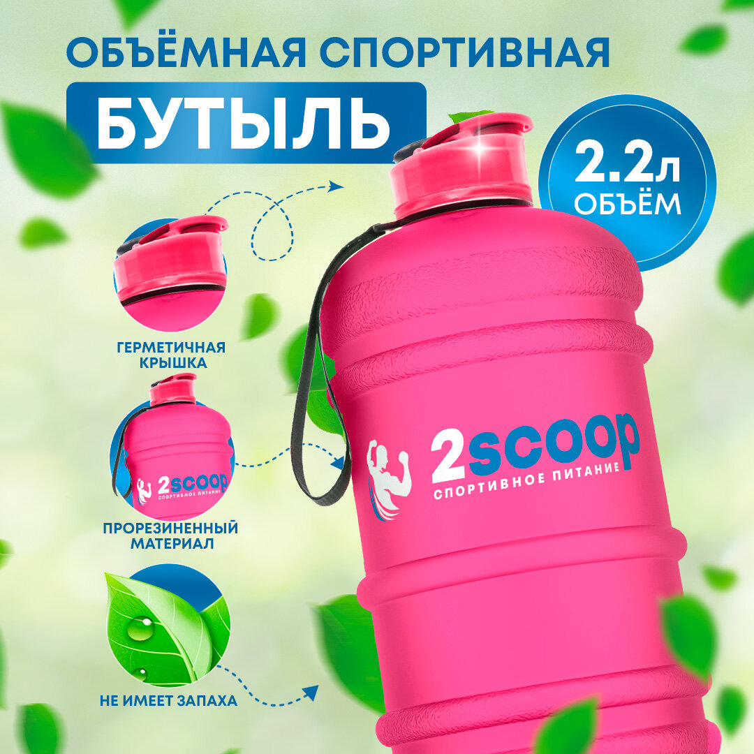 Бутыль 2scoop прорезиненный, Крышка щелчок, 2.2L (Розовая), Спортивный шейкер, 2200 мл, для фитнеса, Бутылка для взбалтывания интересное: