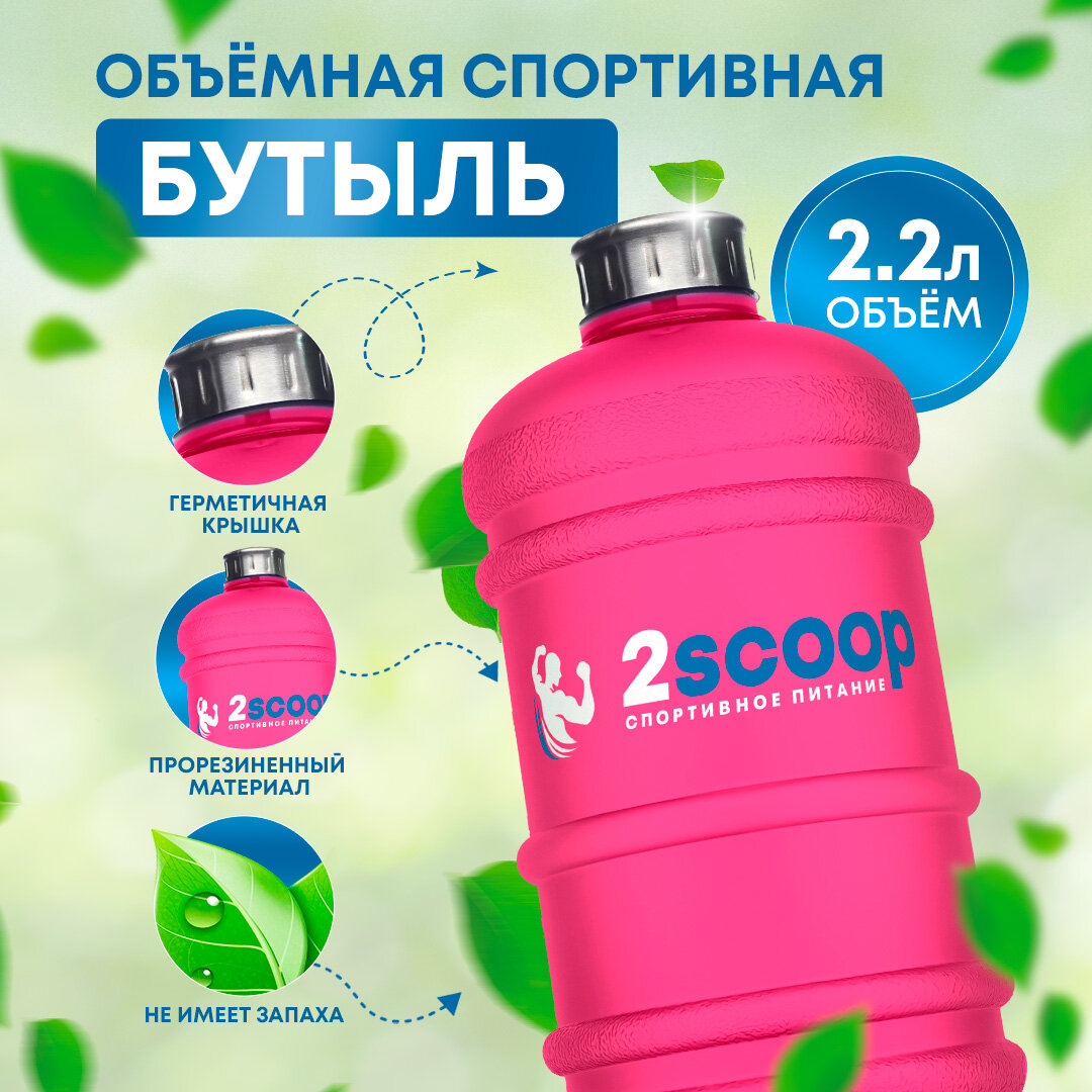 Бутыль 2scoop прорезиненный, металлическая крышка, 2.2L (Розовый), Для фитнеса, Спортивный шейкер, Бутылка для взбалтывания, 2.2 литра интересное:
