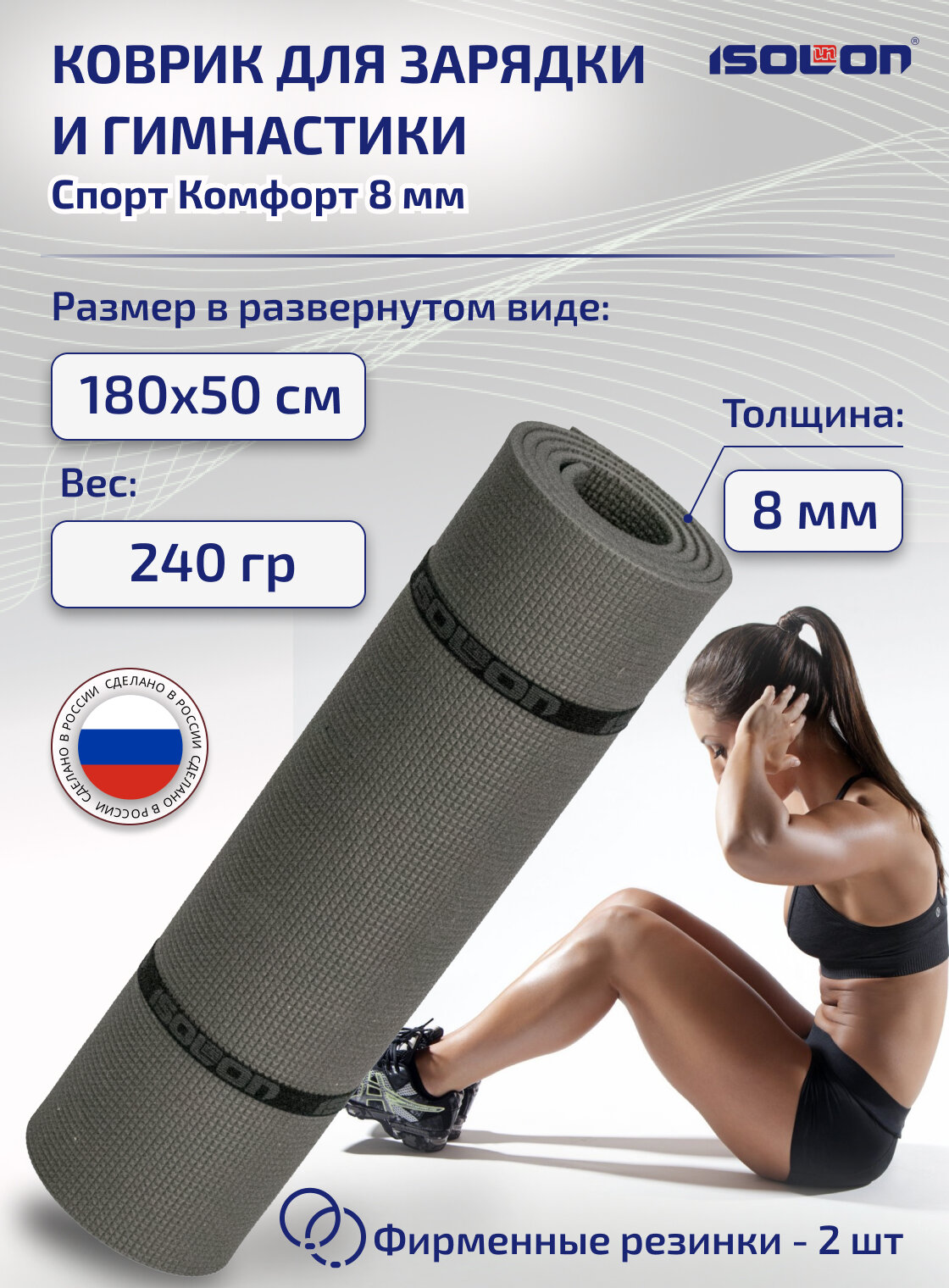 Коврик для зарядки и гимнастики Спорт Комфорт 8, 1800х500х8 мм серый интересное: