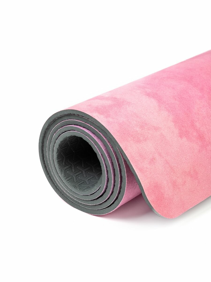 Коврик для йоги и фитнеса нескользящий, TPE/микрофибра, пастельно-розовый