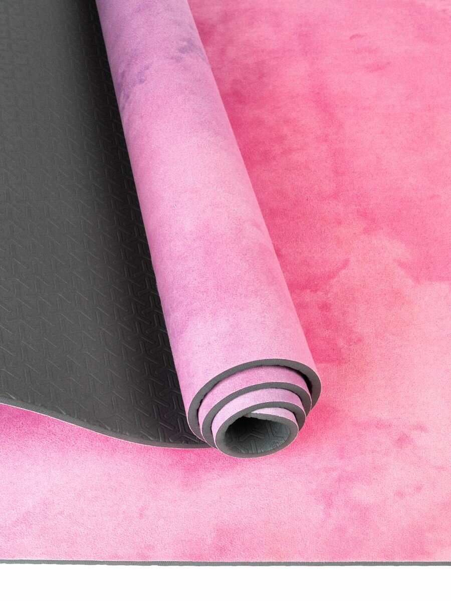 Купить Коврик для йоги и фитнеса нескользящий, TPE/микрофибра, розовая платина