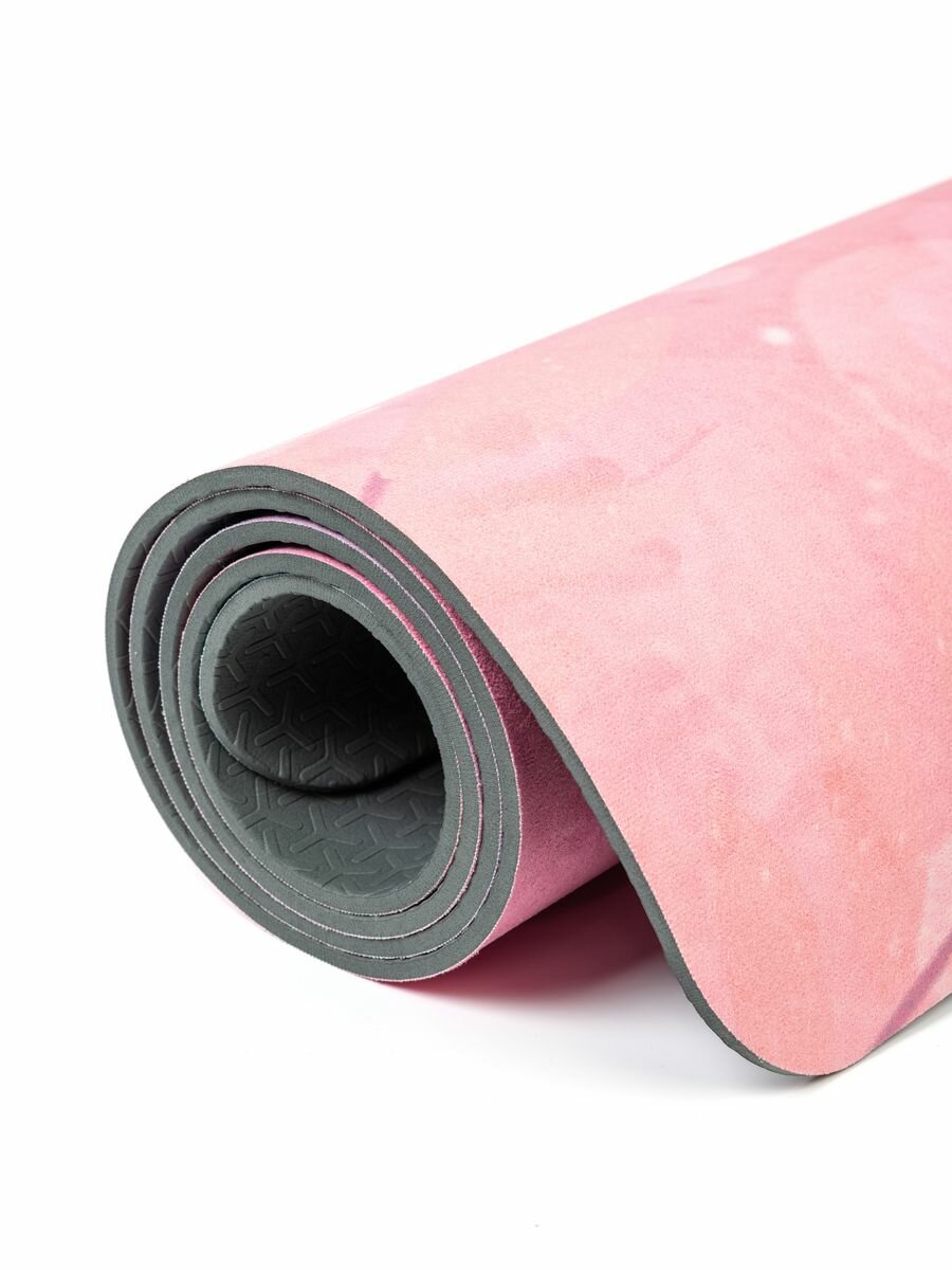 Купить Коврик для йоги и фитнеса нескользящий, TPE/микрофибра, пастельно-розовый
