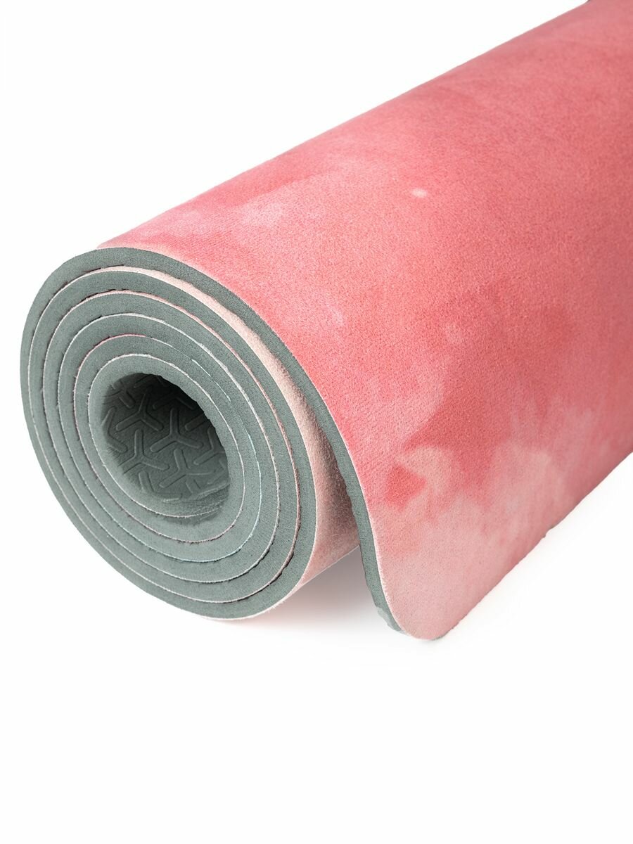 Коврик для йоги и фитнеса нескользящий, TPE/микрофибра, пастельно-розовый