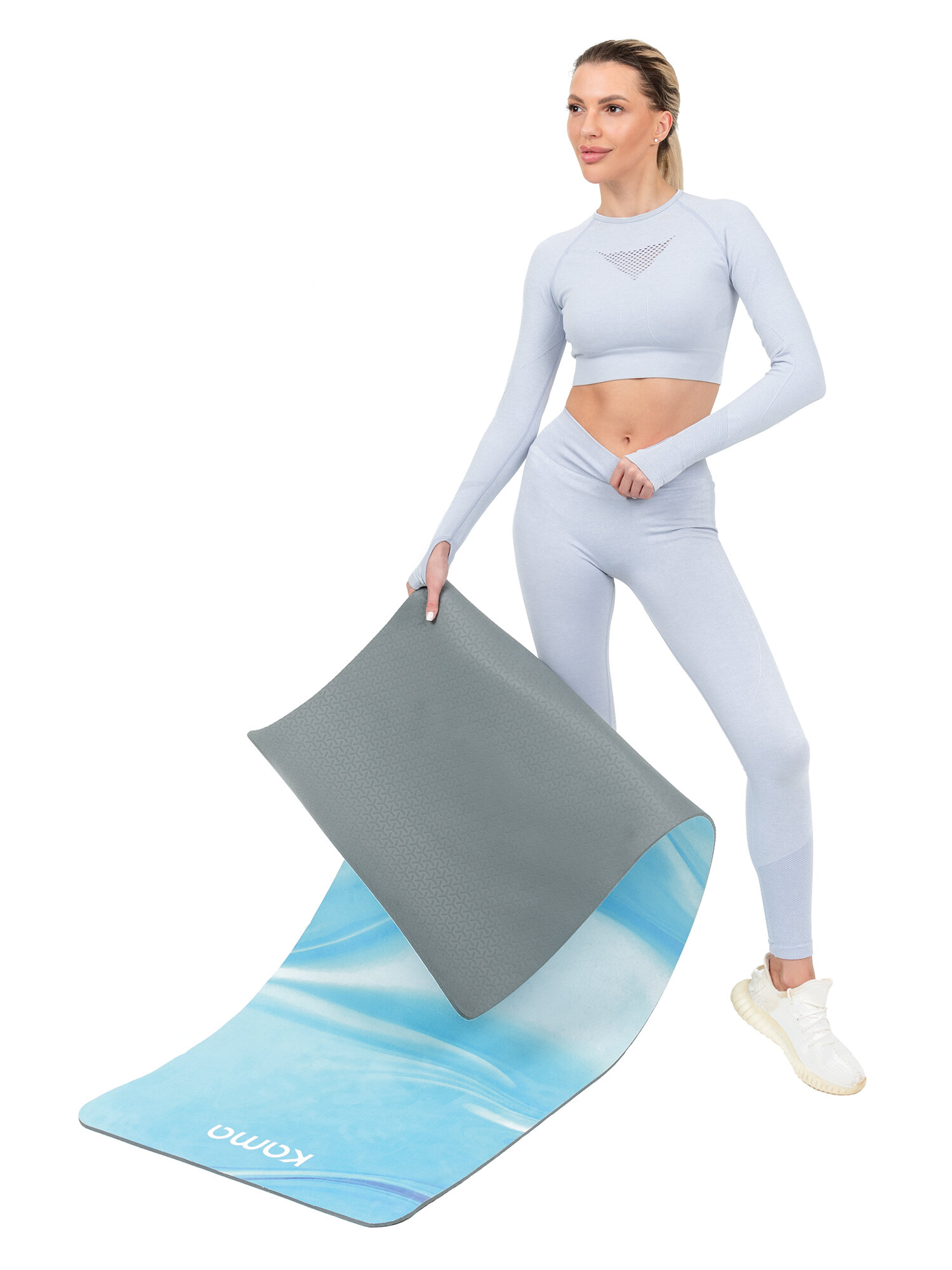 Коврик для йоги и фитнеса нескользящий, TPE/микрофибра, морской