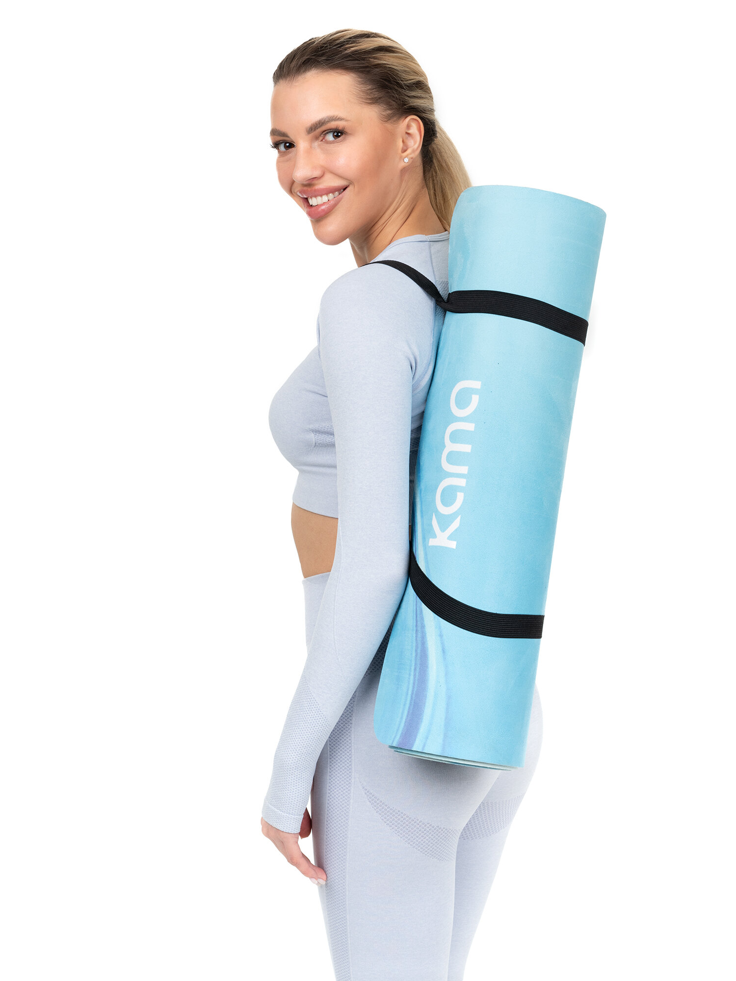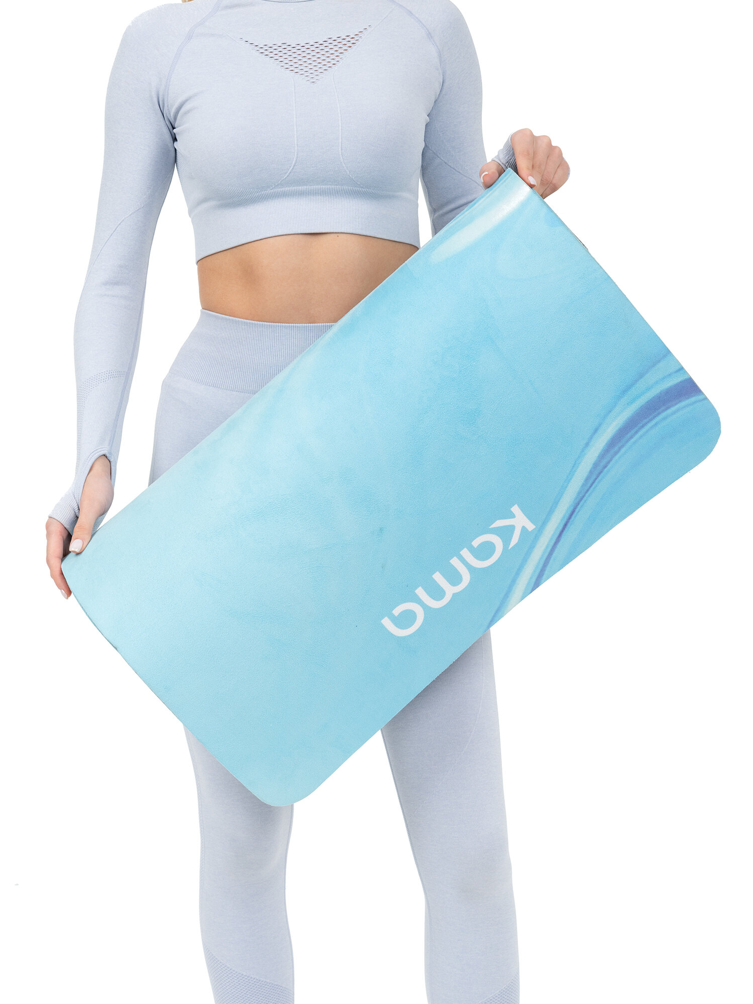 Купить Коврик для йоги и фитнеса нескользящий, TPE/микрофибра, голубой меланж