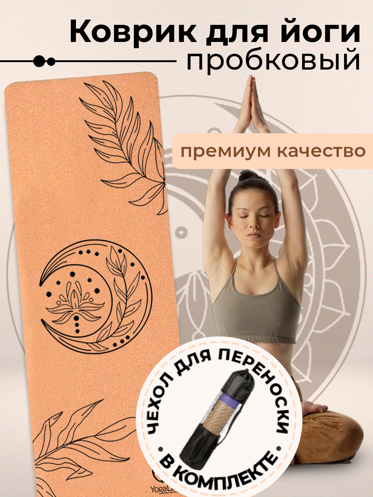 YogaLife / Коврик для йоги и фитнеса пробковый 183х61х0,6 см. Натуральная пробка и каучук. Толщина 6 мм. Ремень-стяжка и чехол в комплекте(1)
