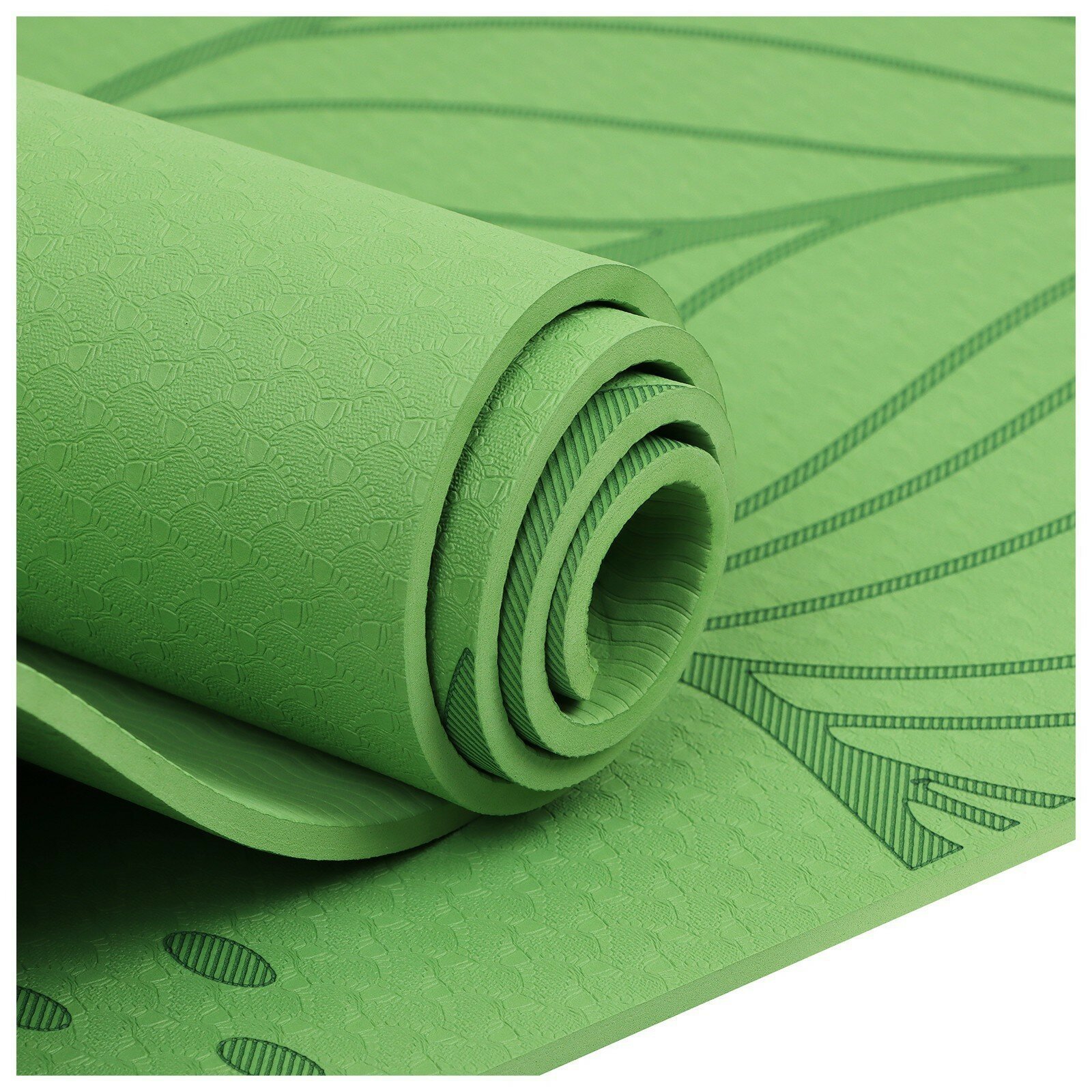Спортивный тренировочный коврик, Hamsa Yoga, Для йоги и фитнеса с покрытием TPE+TC, Гимнастический инвентарь для фитнеса, Размер 183х61х0.6 см.