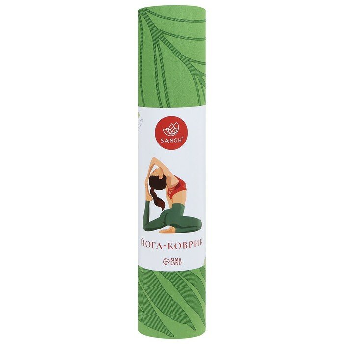 Купить Коврик Sangh "Tropics ", для йоги, размер 183 х 61 х 0,6 см, цвет зеленый