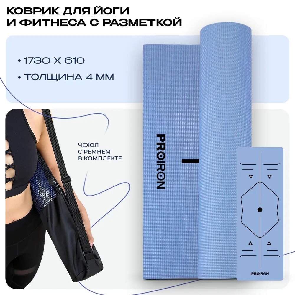 Коврик для фитнеса и йоги, PROIRON, нескользящий, размеры 1730*610*4мм, ПВХ, голубой