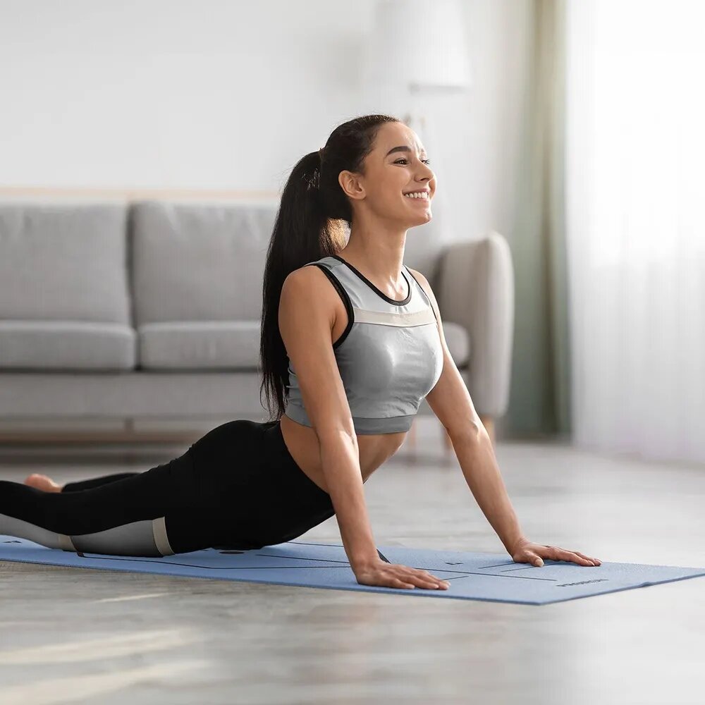 Спортивный тренировочный коврик, Hamsa Yoga, Для йоги и фитнеса с покрытием TPE+TC, Гимнастический инвентарь для фитнеса, Размер 183х61х0.6 см.