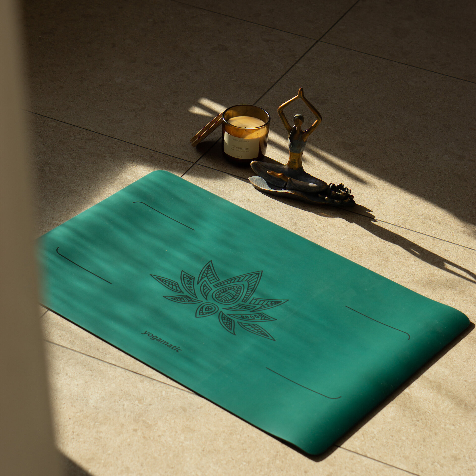 Спортивный тренировочный коврик, Hamsa Yoga, Для йоги и фитнеса с покрытием TPE+TC, Гимнастический инвентарь для фитнеса, Размер 183х61х0.6 см.