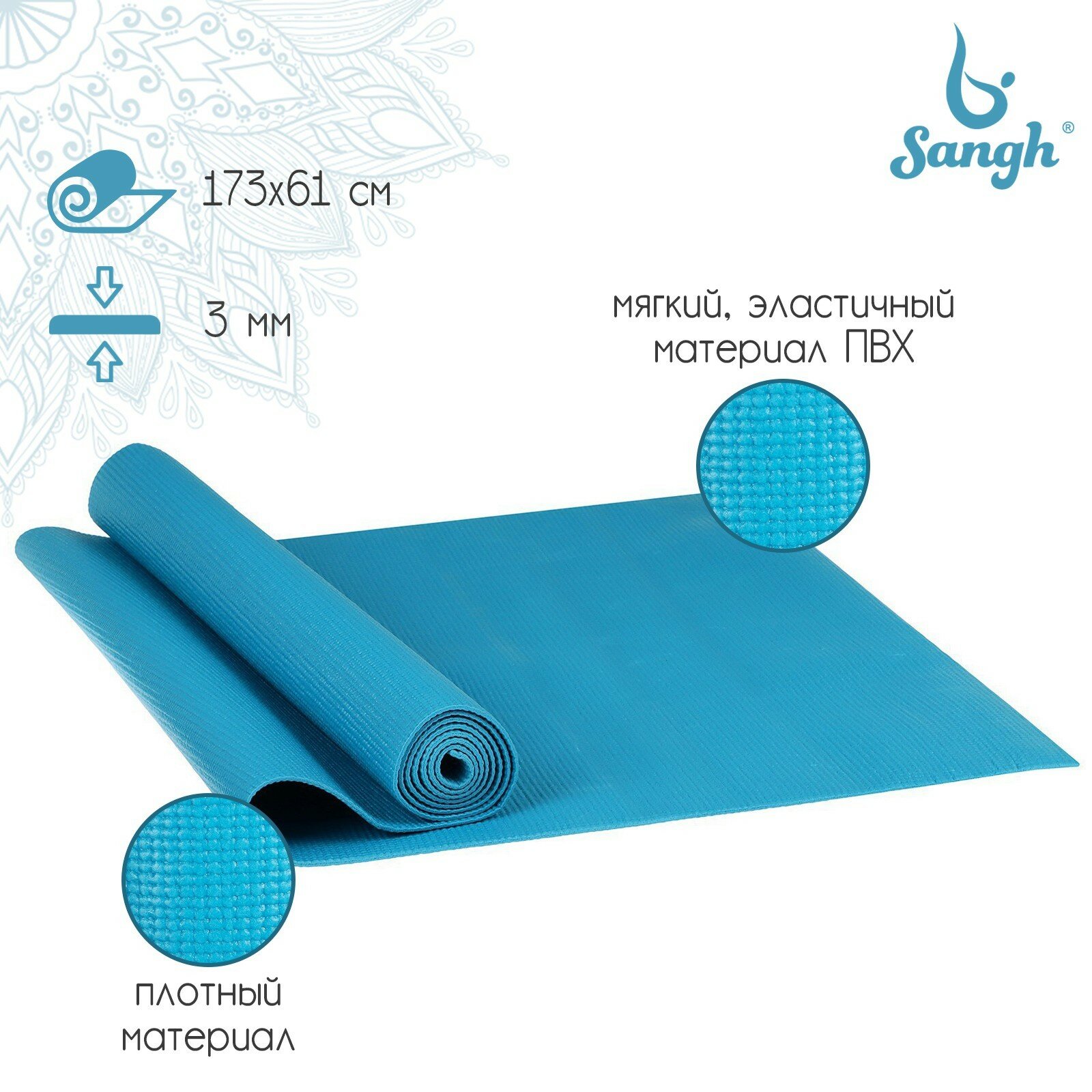 Коврик Sangh, для йоги, размер 173 х 61 х 0,3 см, цвет синий интересное: