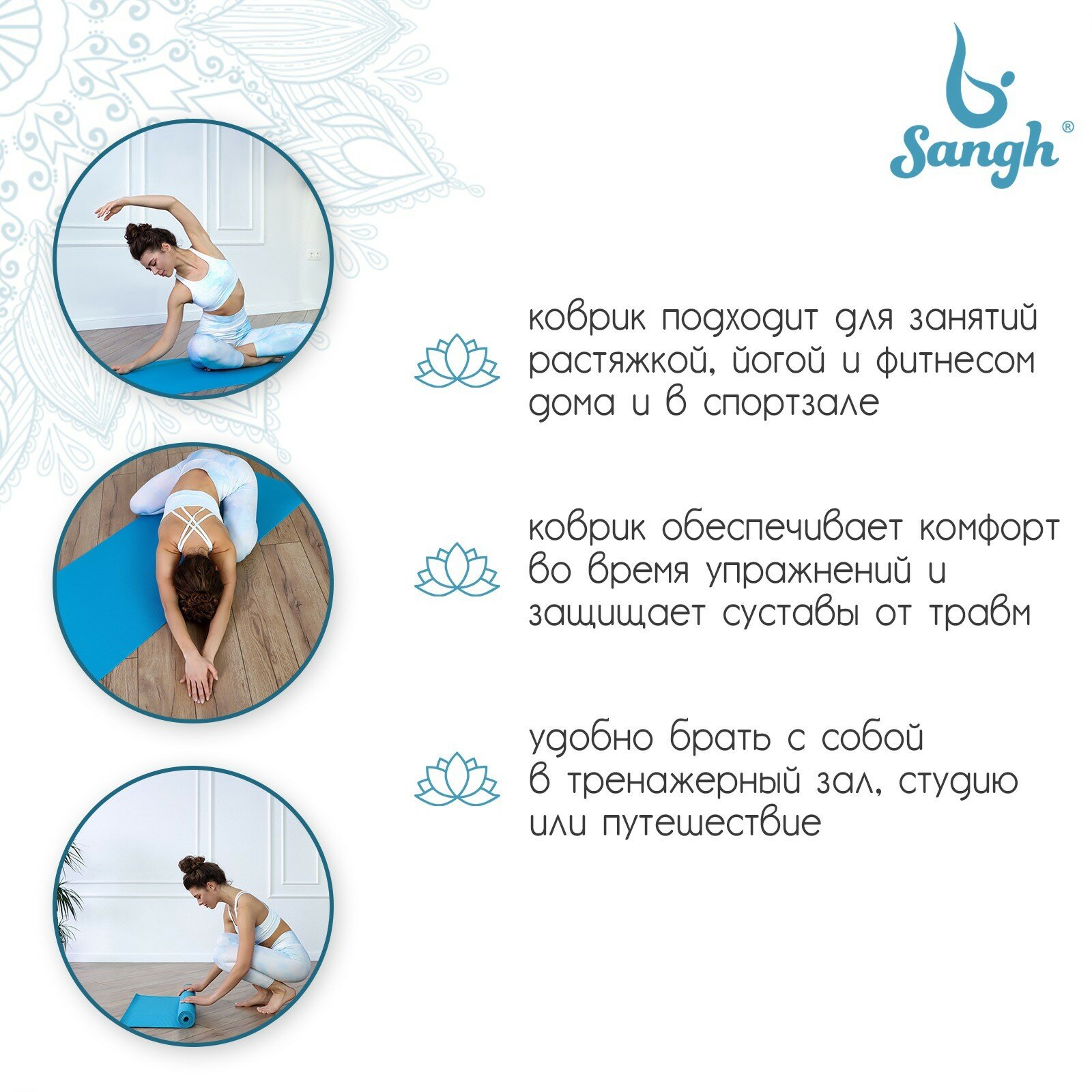 Ниже Вы можете прочитать отзывы на Коврик Sangh, для йоги, размер 173 х 61 х 0,3 см, цвет синий, ознакомится с подробными характеристиками, посмотреть интересные обзоры и фотографии на Коврик Sangh, для йоги, размер 173 х 61 х 0,3 см, цвет синий.