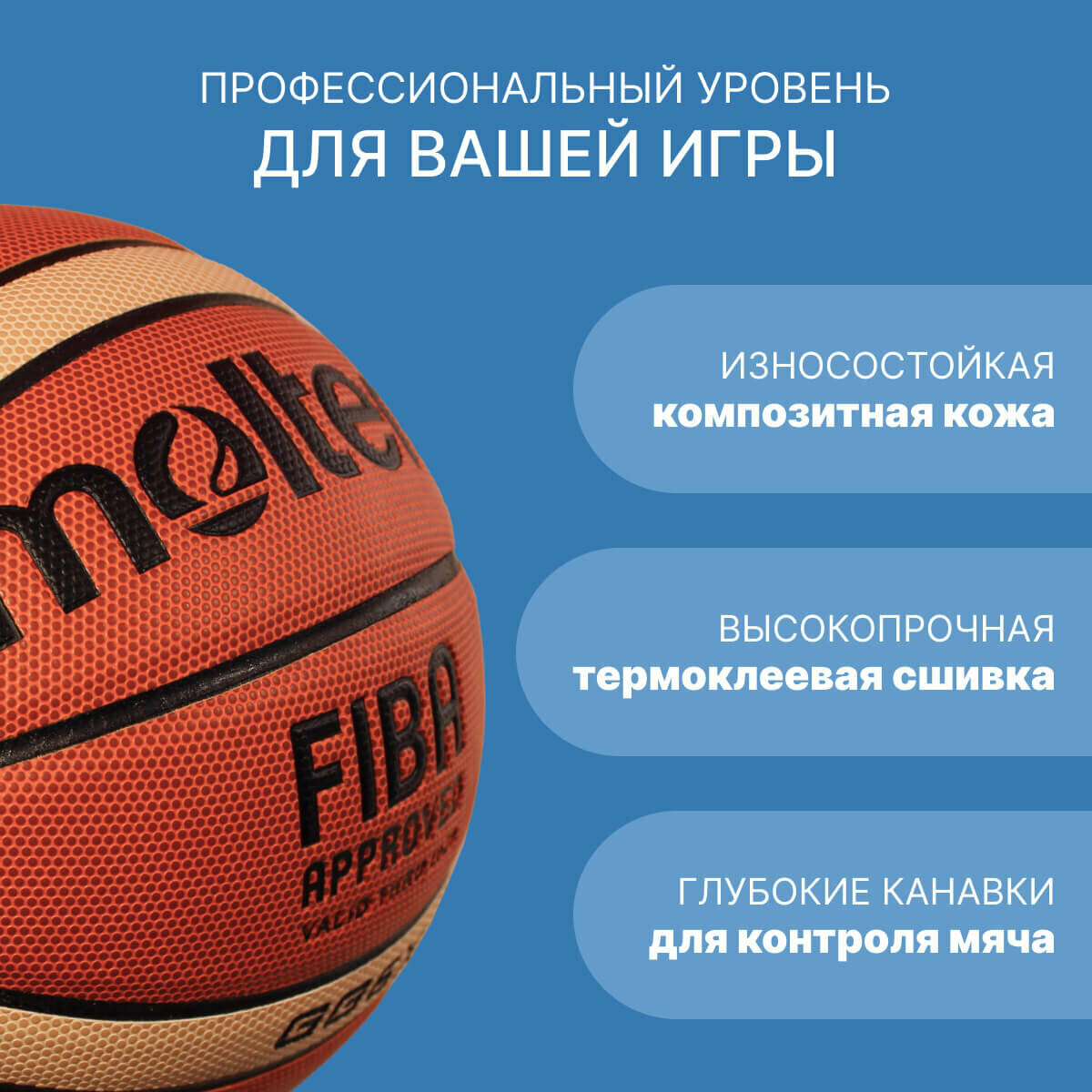 Мяч баскетбольный Molten GG7X, размер 7, 12 панелей, коричневый