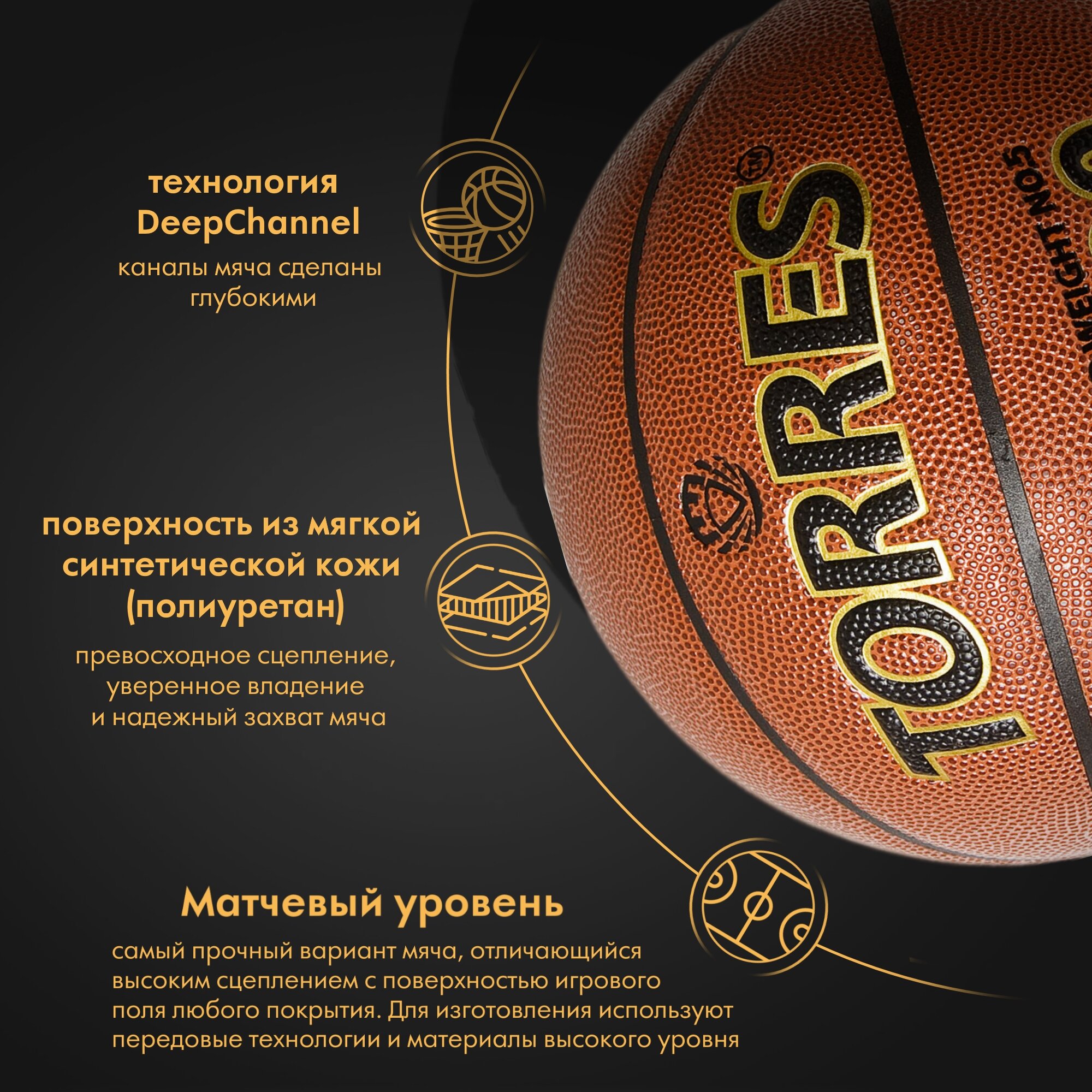 Мяч баскетбольный TORRES BM900 B32035, размер 5 интересное: