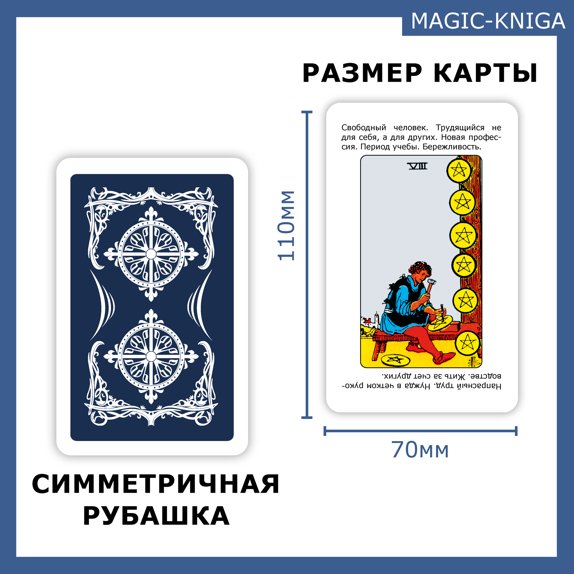 | Подробная комплектация | 78 карт, 2 карты с раскладами, коробка для таро |
