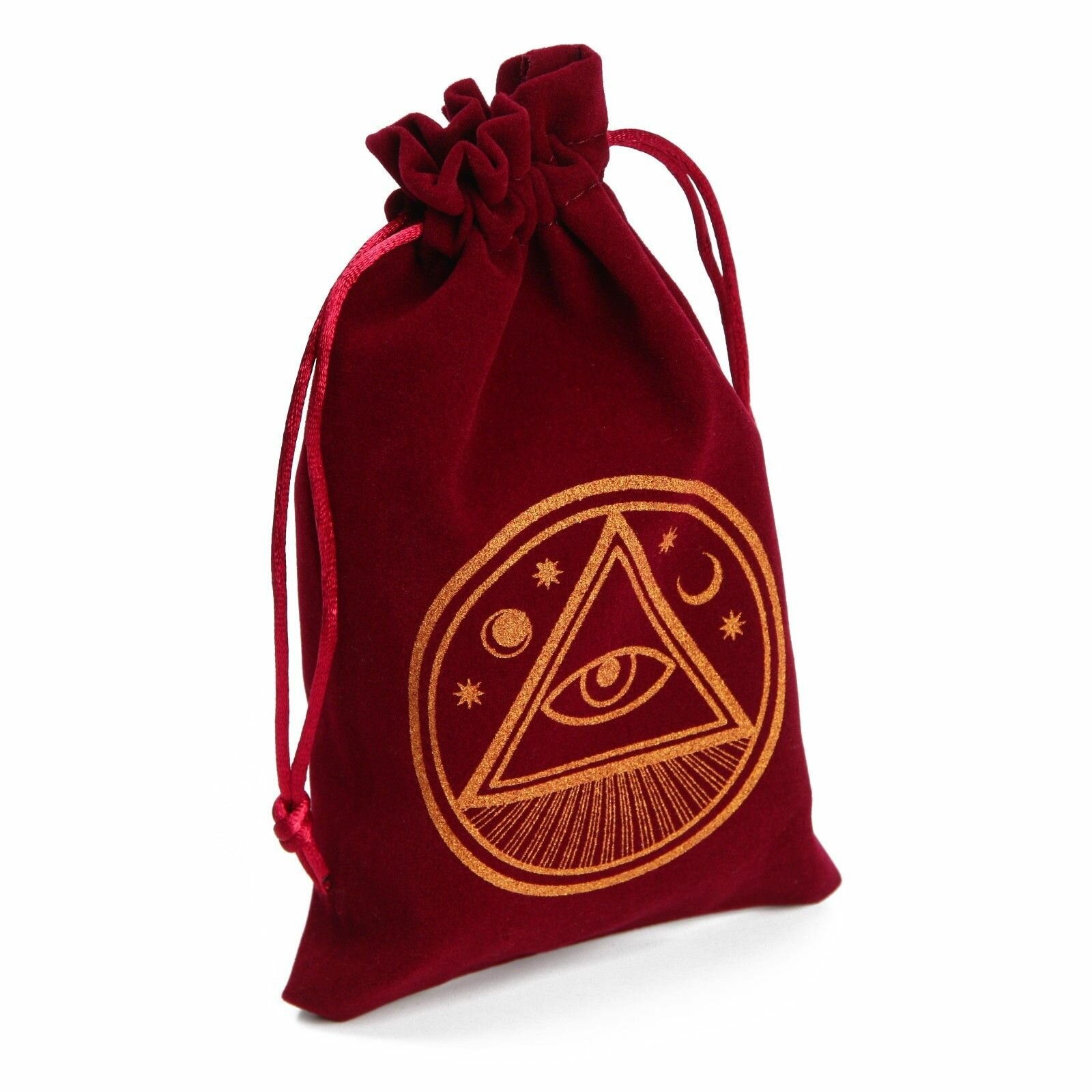 Мешочек для хранения карт Таро, «Всевидящее око», бархатный, бордовый, 12 х 18 см