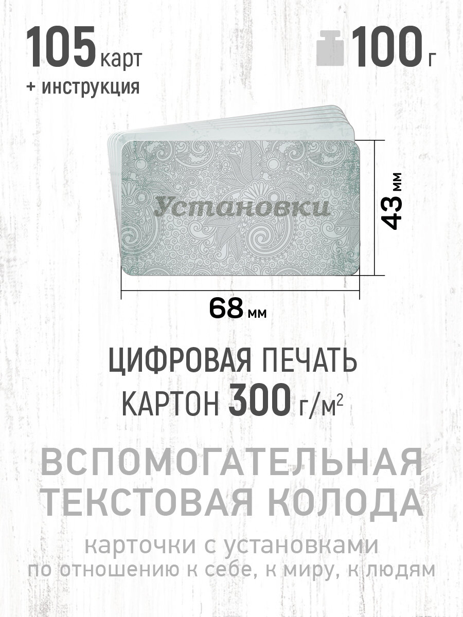 | Подробная комплектация | 105 карт, инструкция с техниками работы, коробочка из картона |
