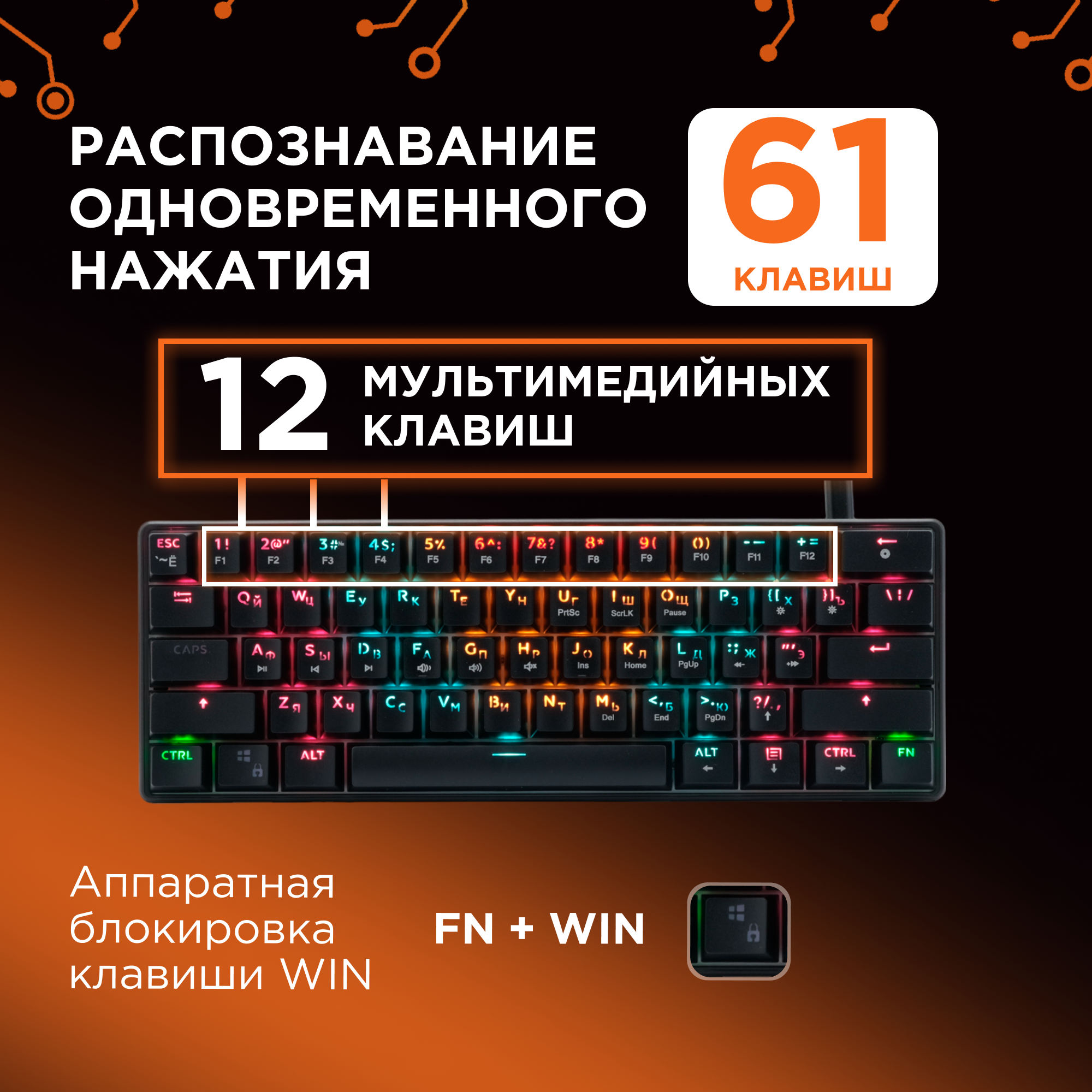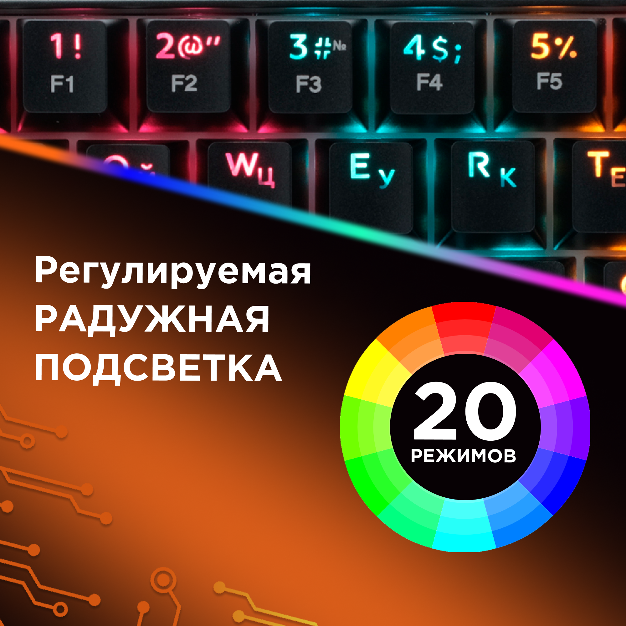 Клавиатура механическая игровая Гарнизон BSUN Red, подсветка 20 режимов, кабель тканевый 1.5м GK-400GL интересное: