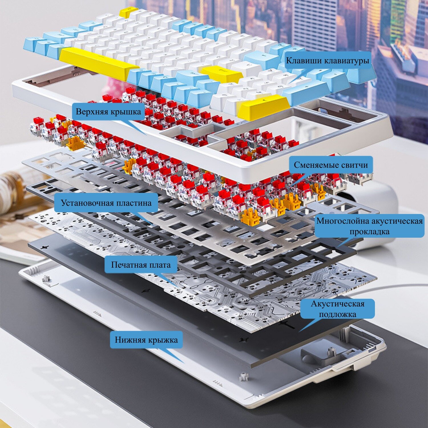 Клавиатура механическая русская Wolf K3 MAX с подсветкой + Hot Swap проводная для компьютера ноутбука Gaming/game keyboard usb светящаяся (бежевый)