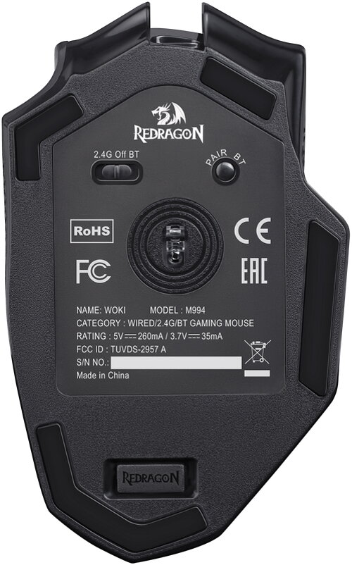 Беспроводная игровая мышь REDRAGON WOKI чёрная (USB, Bluetooth, Pixart P3395, Huano, 6 кн., 26000 Dpi, RGB подсветка, 2000 мАч) интересное: