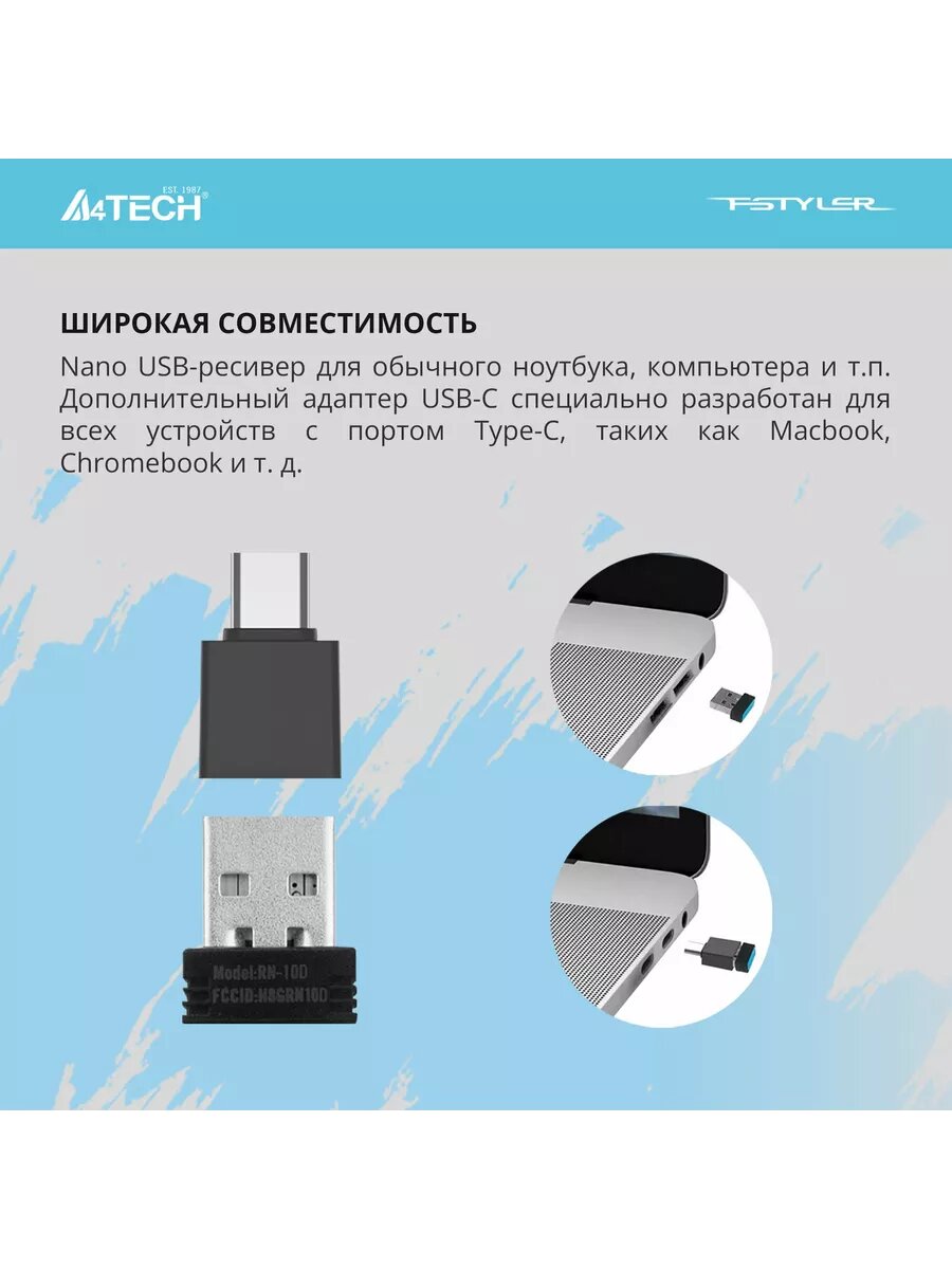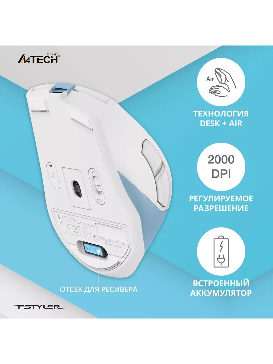 Купить Мышь A4TECH Fstyler FG45CS Air2, оптическая, беспроводная, USB, голубой и белый [fg45cs air2 usb (icy blue)]