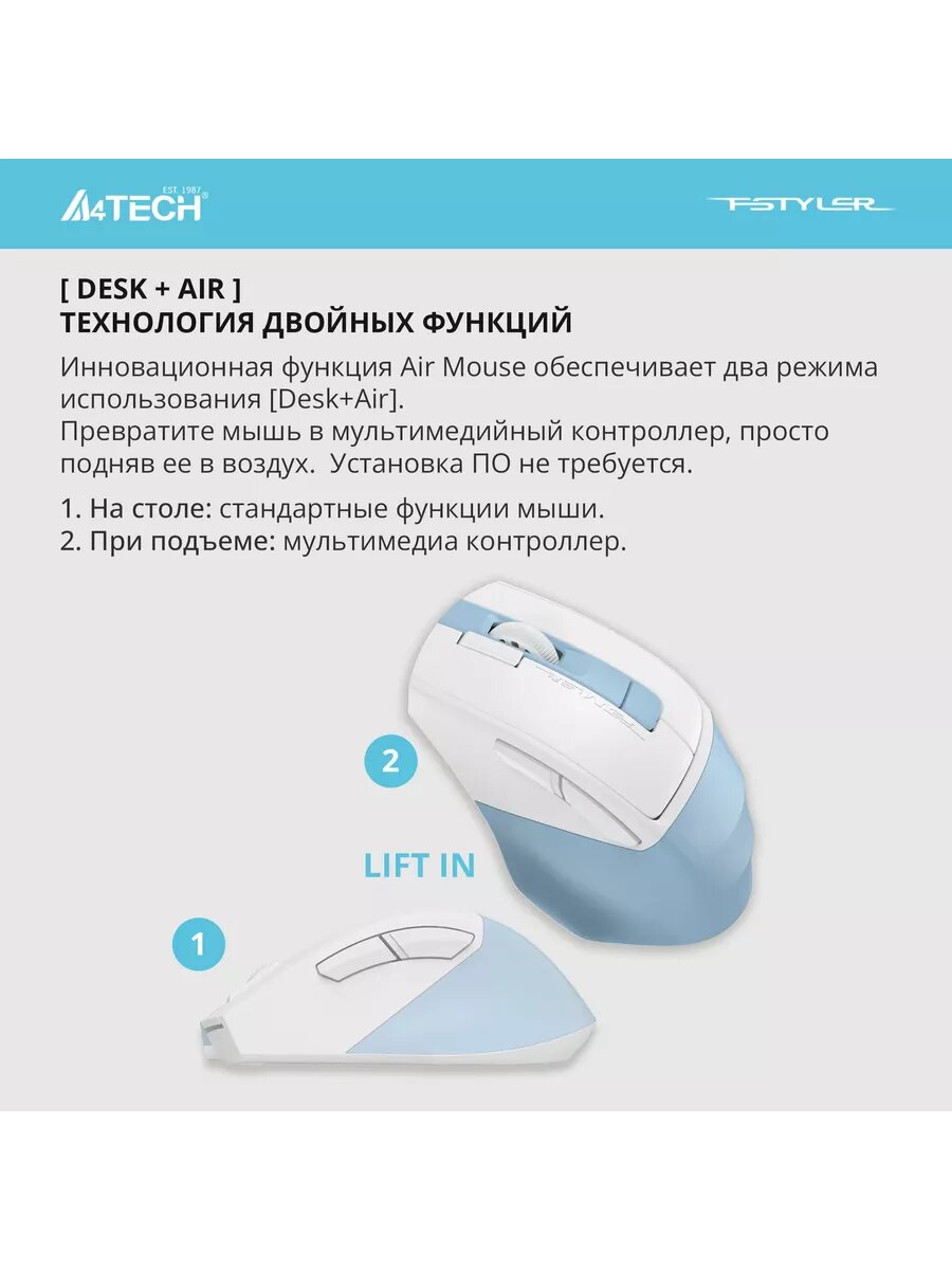 Мышь A4TECH Fstyler FG45CS Air2 беспроводная голубой/белый