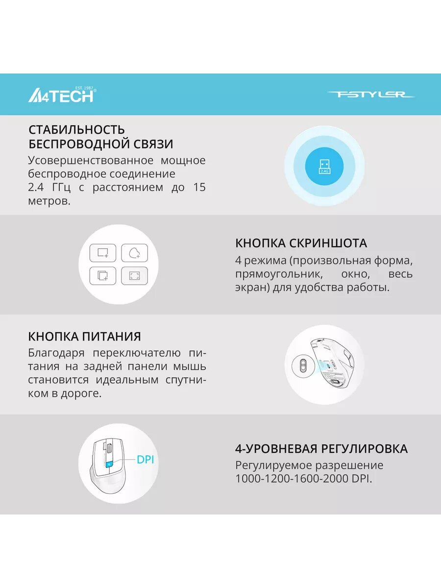 Мышь A4TECH Fstyler FG45CS Air2 беспроводная белый/серебристый