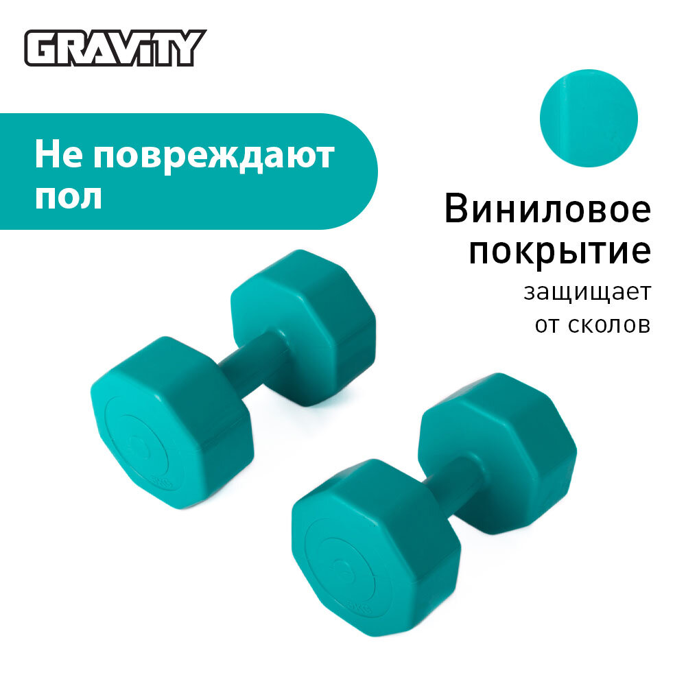 Виниловые гантели Gravity, восьмиугольные, 1.5 кг, пара, бирюзовый
