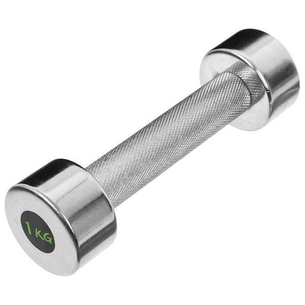 Купить Гантель ONLITOP, хромированная, вес 1 кг, длина 17 см, ширина хвата 12 см, толщина хвата 2,5 см, цвет серебристый
