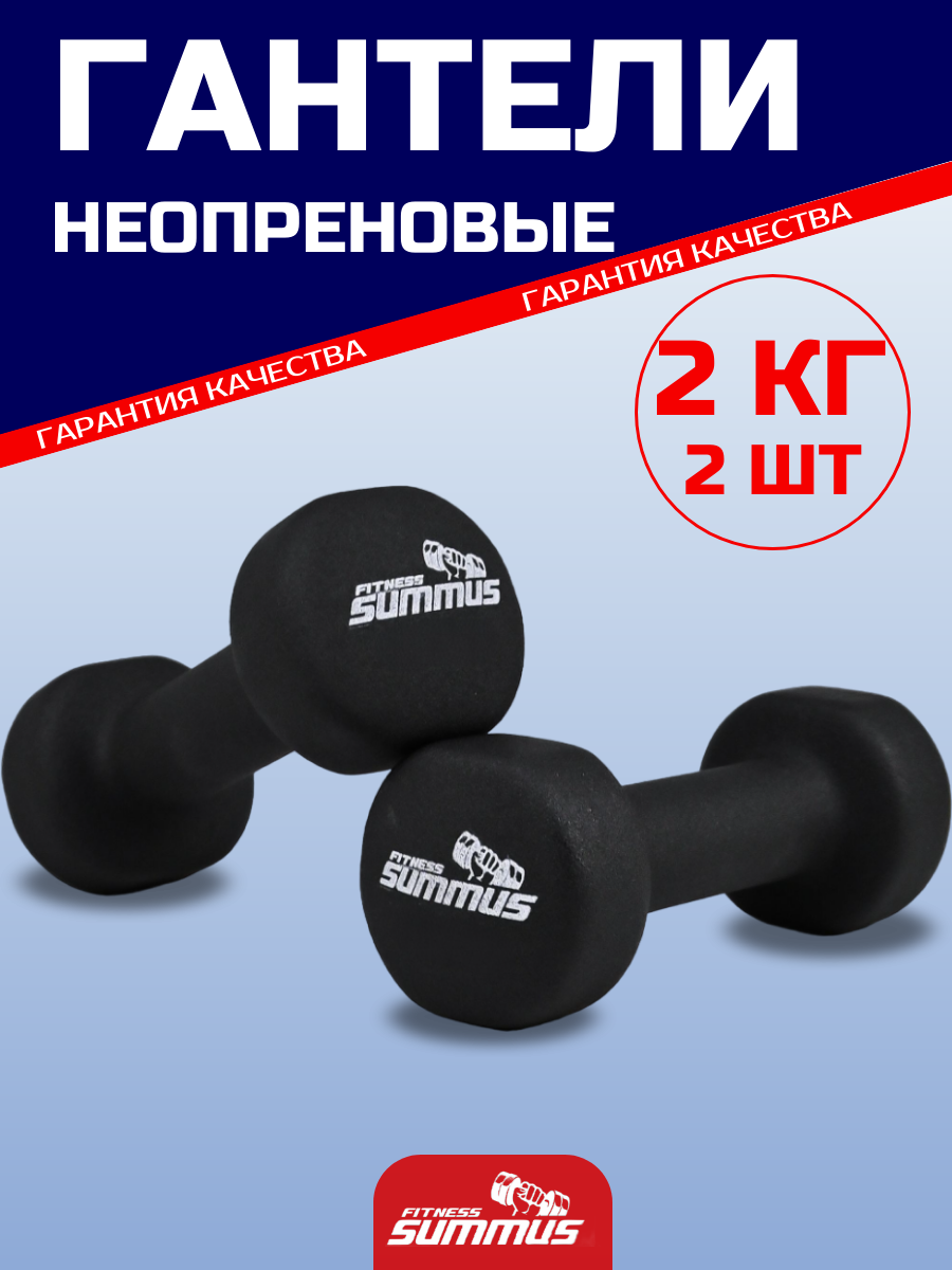 Купить Гантели для фитнеса неопреновые Summus 2 шт. по 2 кг женские, мужские для дома и зала, для детей, черный, арт. 600-016
