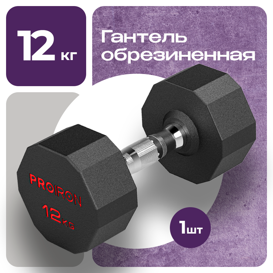 Купить Гантель 12 кг 1 шт обрезиненная PROIRON, для фитнеса и спорта, черный и хром