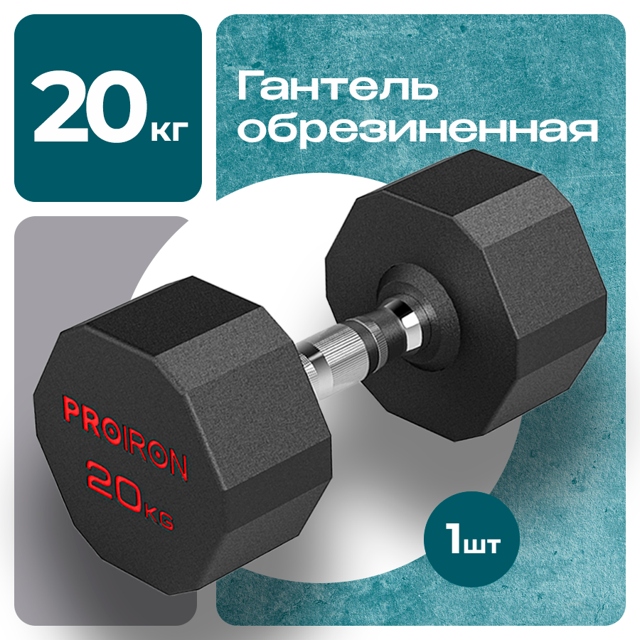 Купить Гантель 20 кг 1 шт обрезиненная PROIRON, для фитнеса и спорта, черный и хром