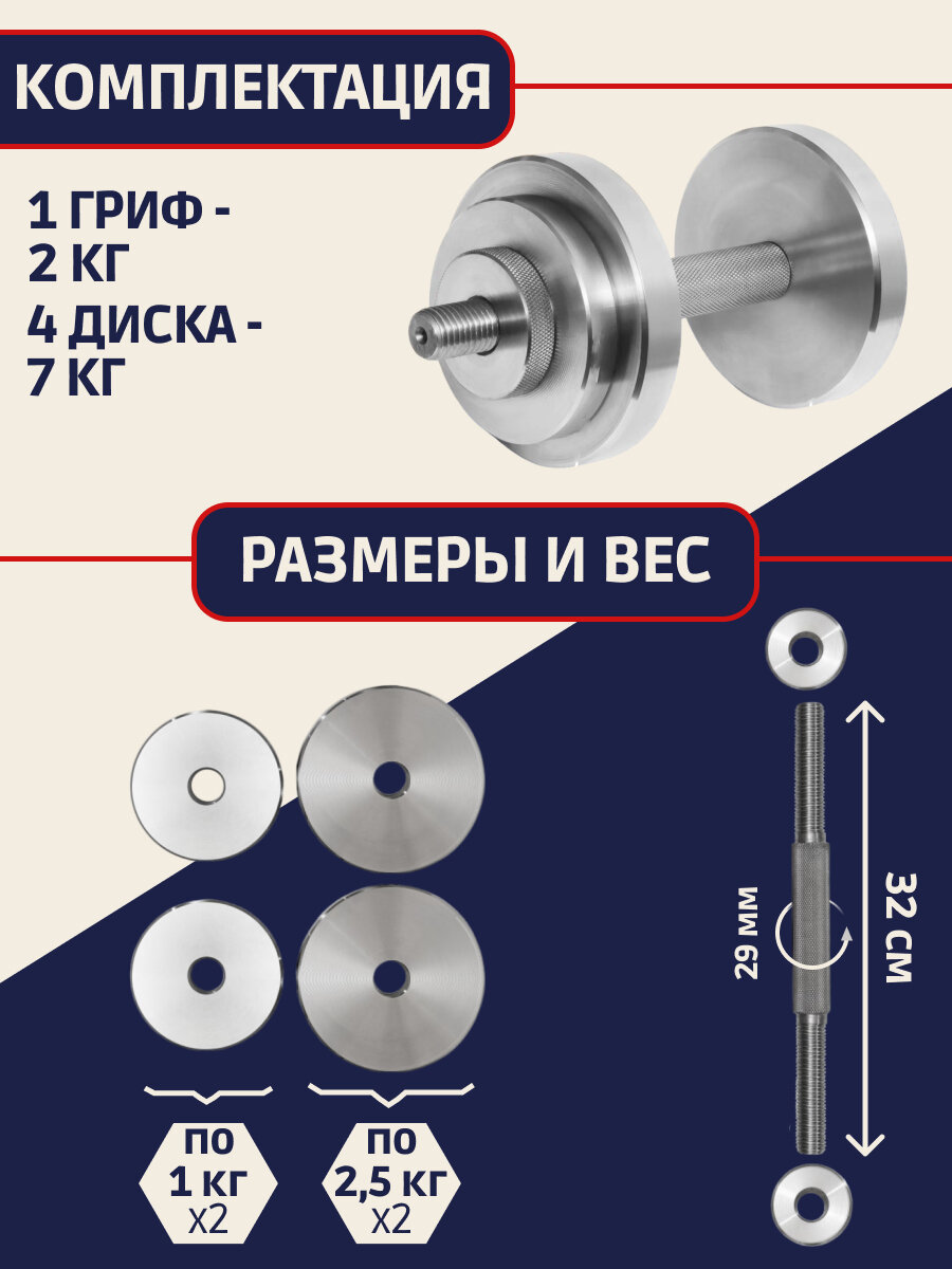 Гантель стальная разборная 9 кг интересное: